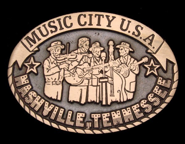LL10104 NOS 1980s MUSIC CITY USA NASHVILLE COUNTRY MUSIC SOLID BRONZE BUCKLE
