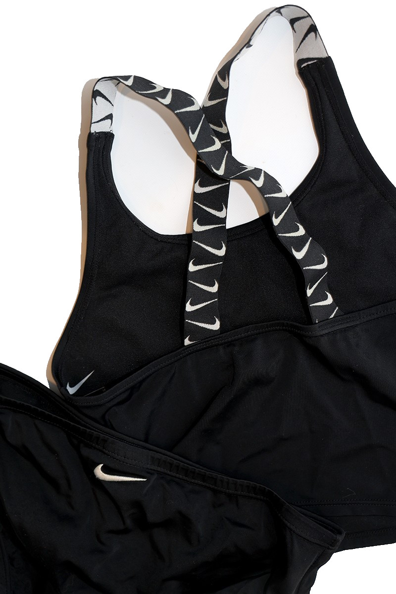 как выглядит Girls Youth Medium 10/12 Solid Black Nike 2 pc. Cross-back Tankini Swimsuit фото