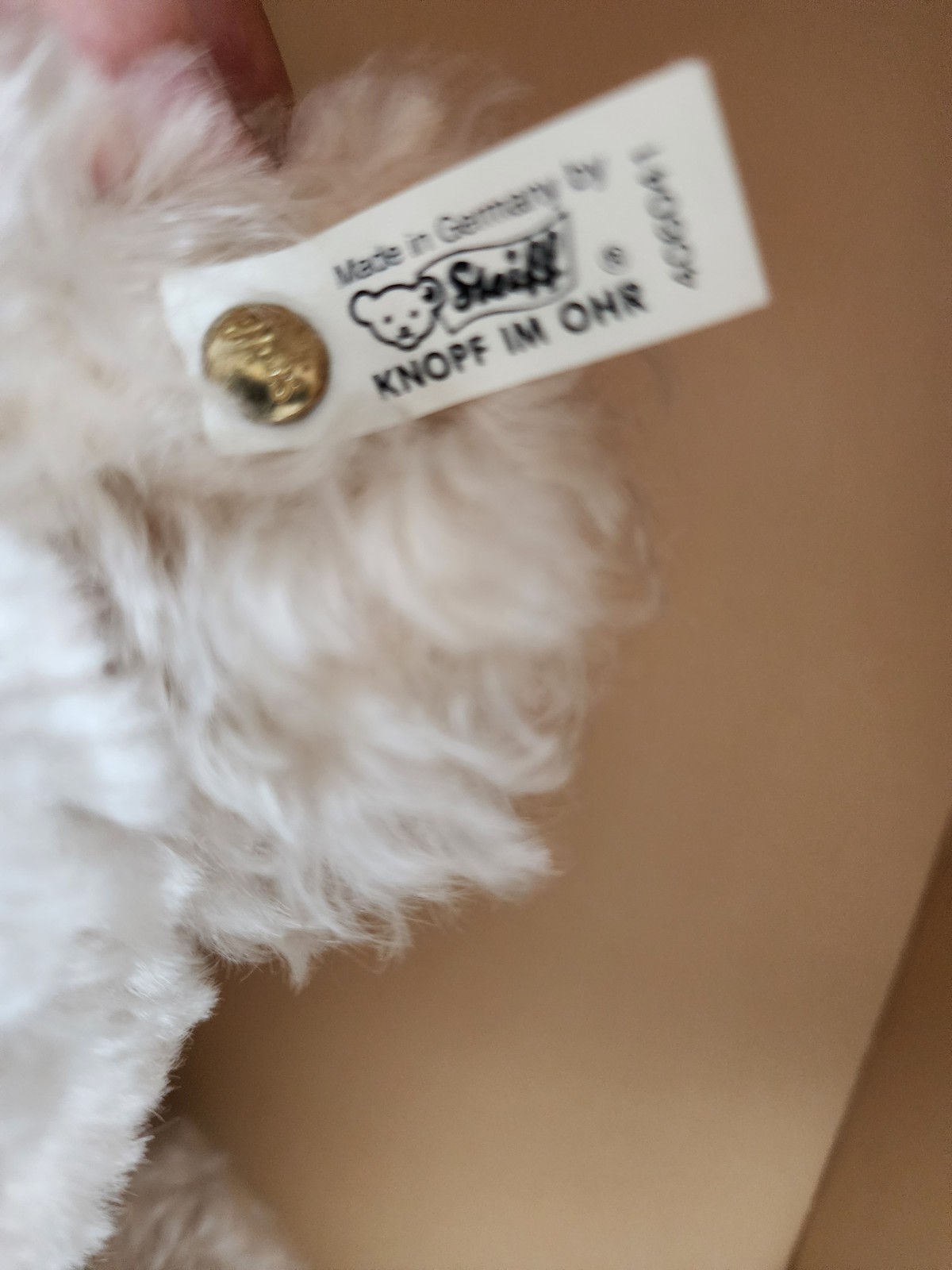 как выглядит STEIFF 26 WHITE TEDDY BEAR 1908 Replica with Growler 406041 1994 Mohair Exc фото