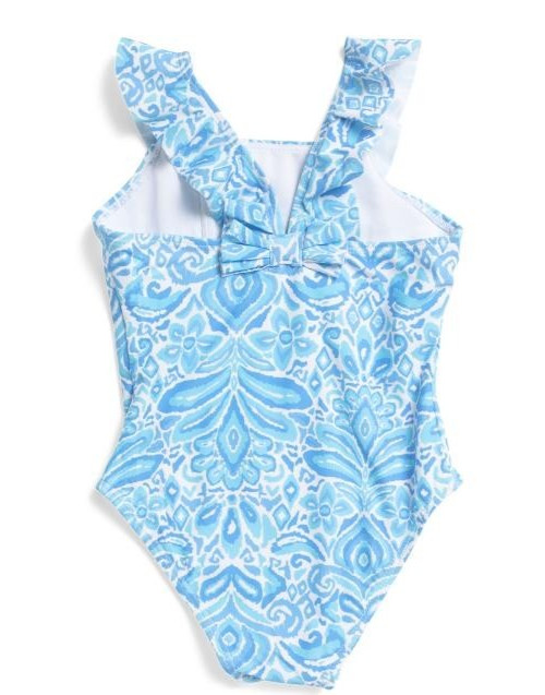 как выглядит SNAPPER ROCK Ruffle Floral Fully-Lined Swimsuit - Blue- NWT Girls 3-4 фото