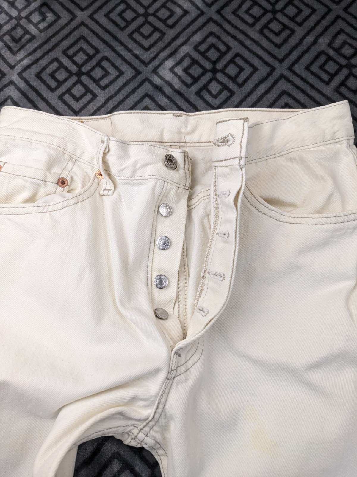 Vtg Levis 501 WHITE Denim Jeans W 32 L 32 USA Button Fly Red Tab 80s Distressed