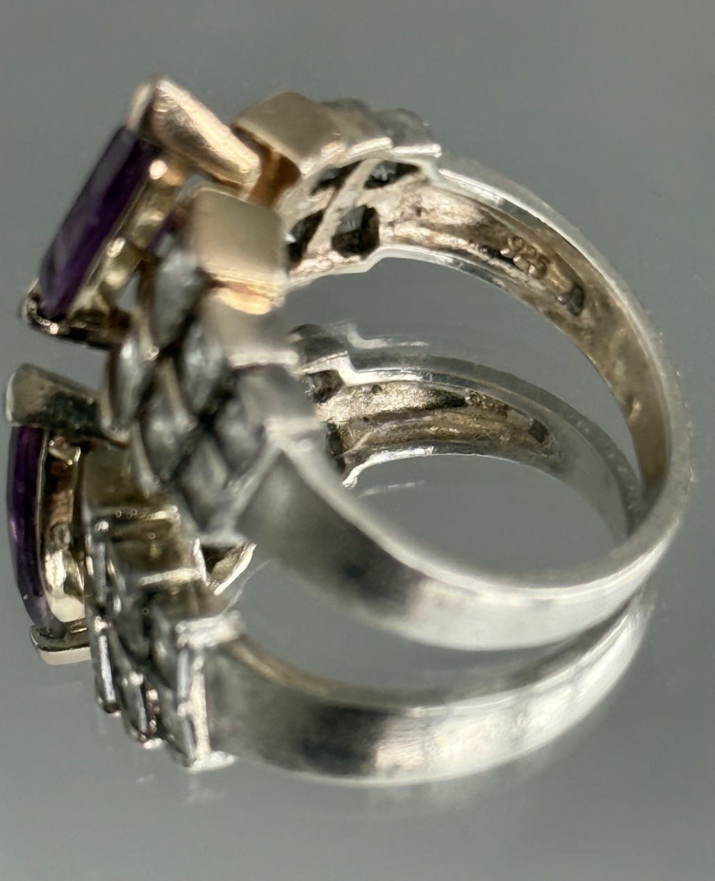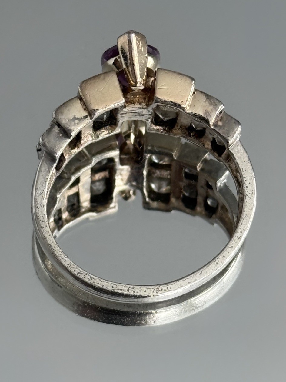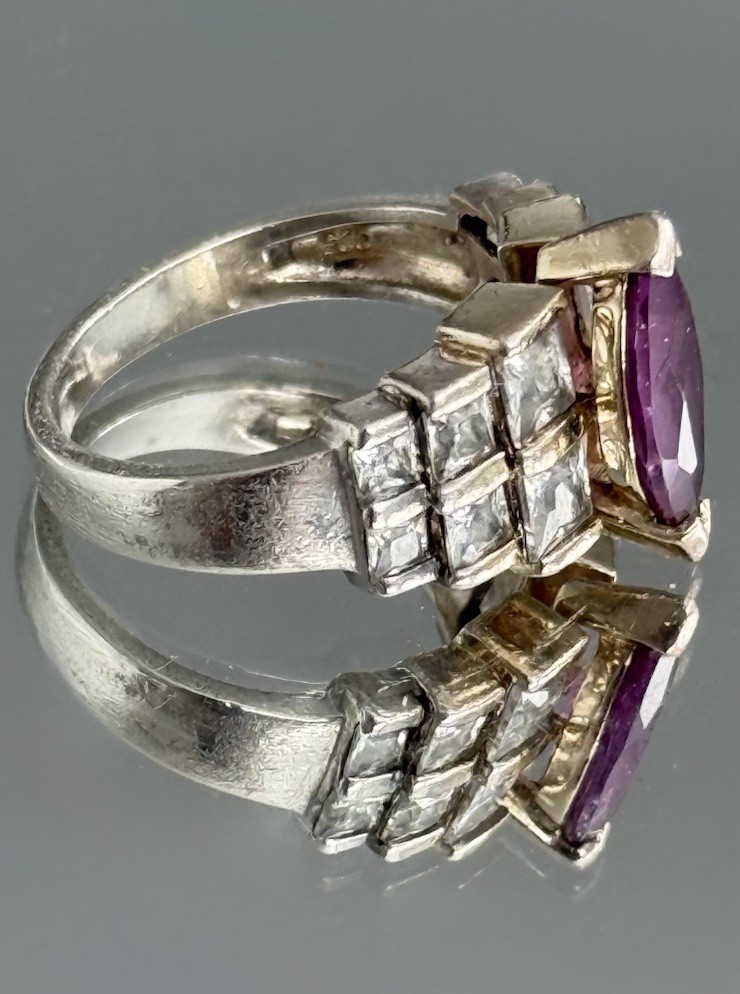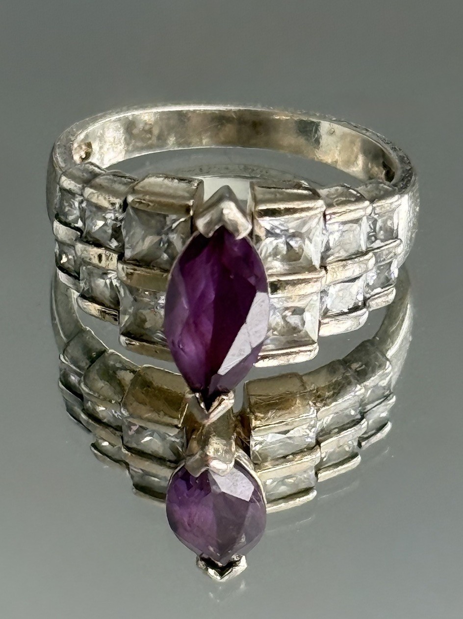 как выглядит VTG 80s Sterling Silver 925 Marquise Cut Amethyst CZ Ring Purple Gemstone Size 8 фото