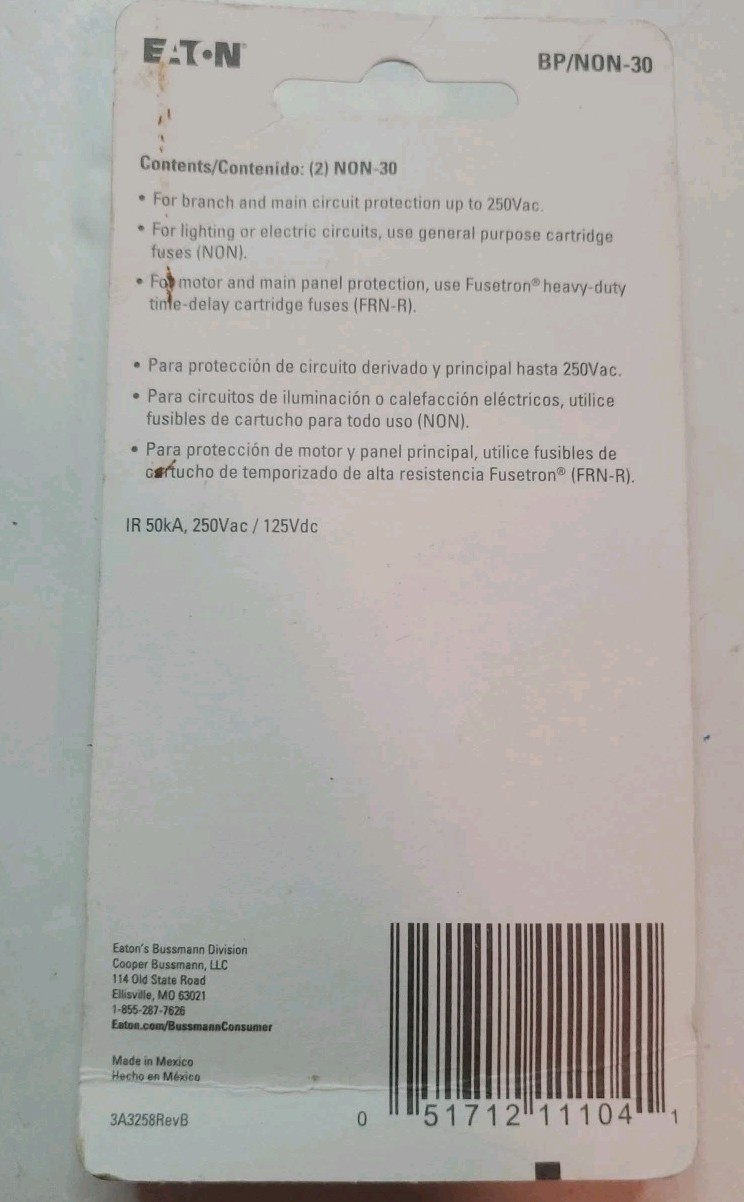 как выглядит EATON Bussmann 250 Vac BP/NON 30A General Purpose Fuses Lot of 2 фото