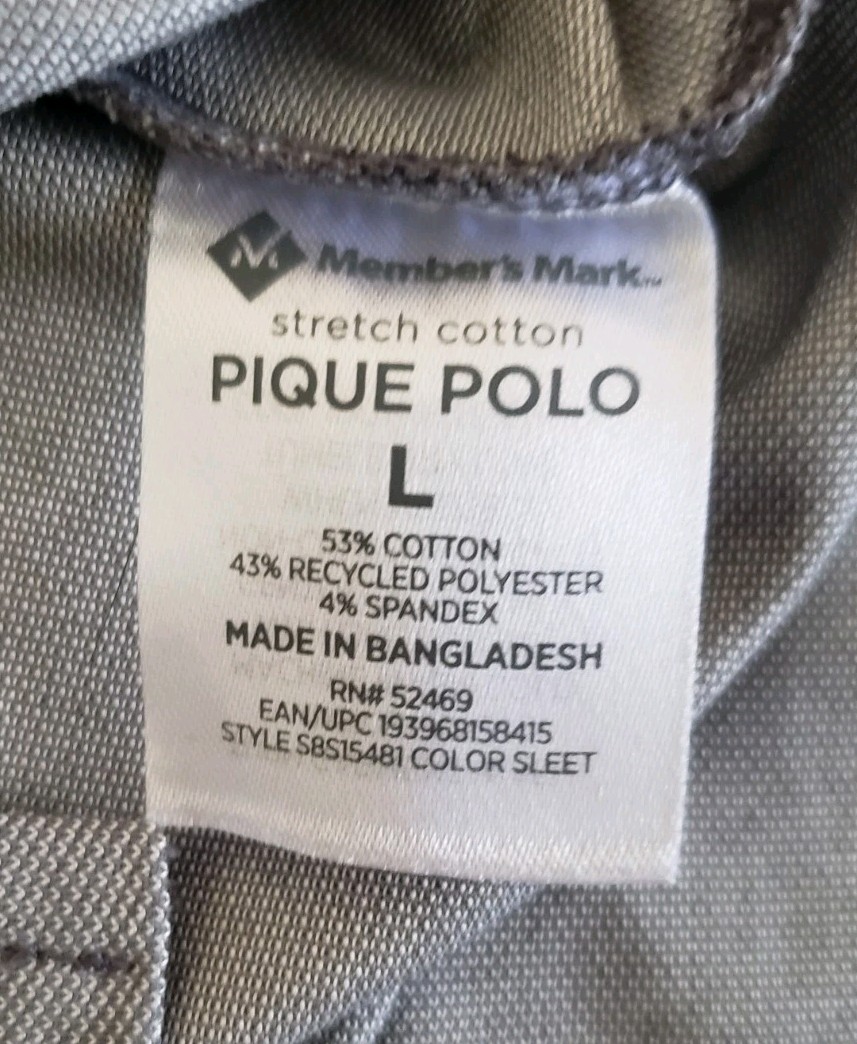 как выглядит Members Mark Mens Large Polo Shirt Gray Stretch Pique Moisture Wicking Cotton фото