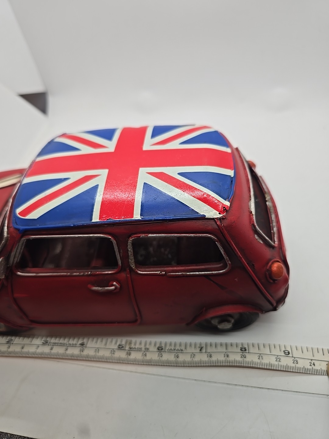 British Mini Cooper with Union Jack 9 Tin Toy Decorative Car by Kreatif Kraft