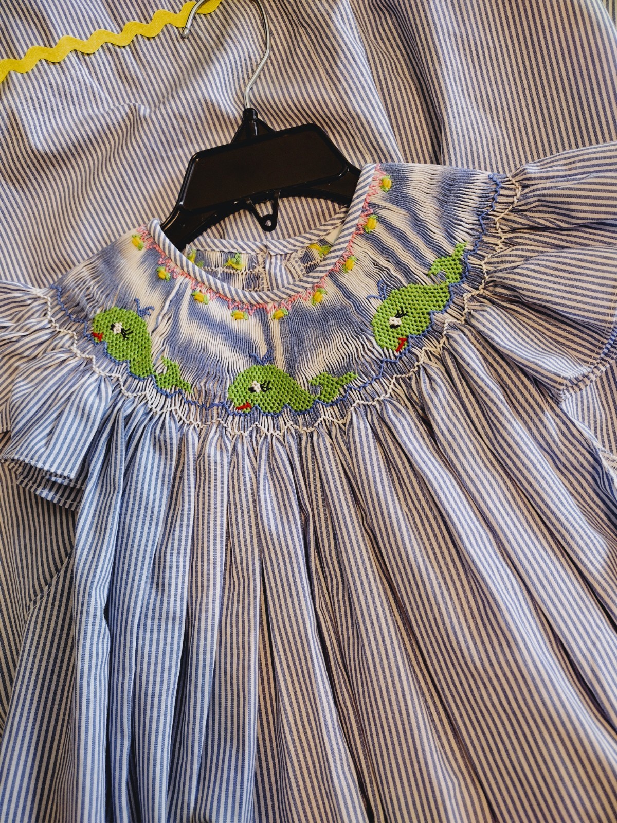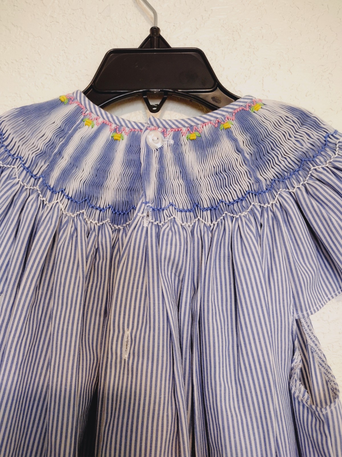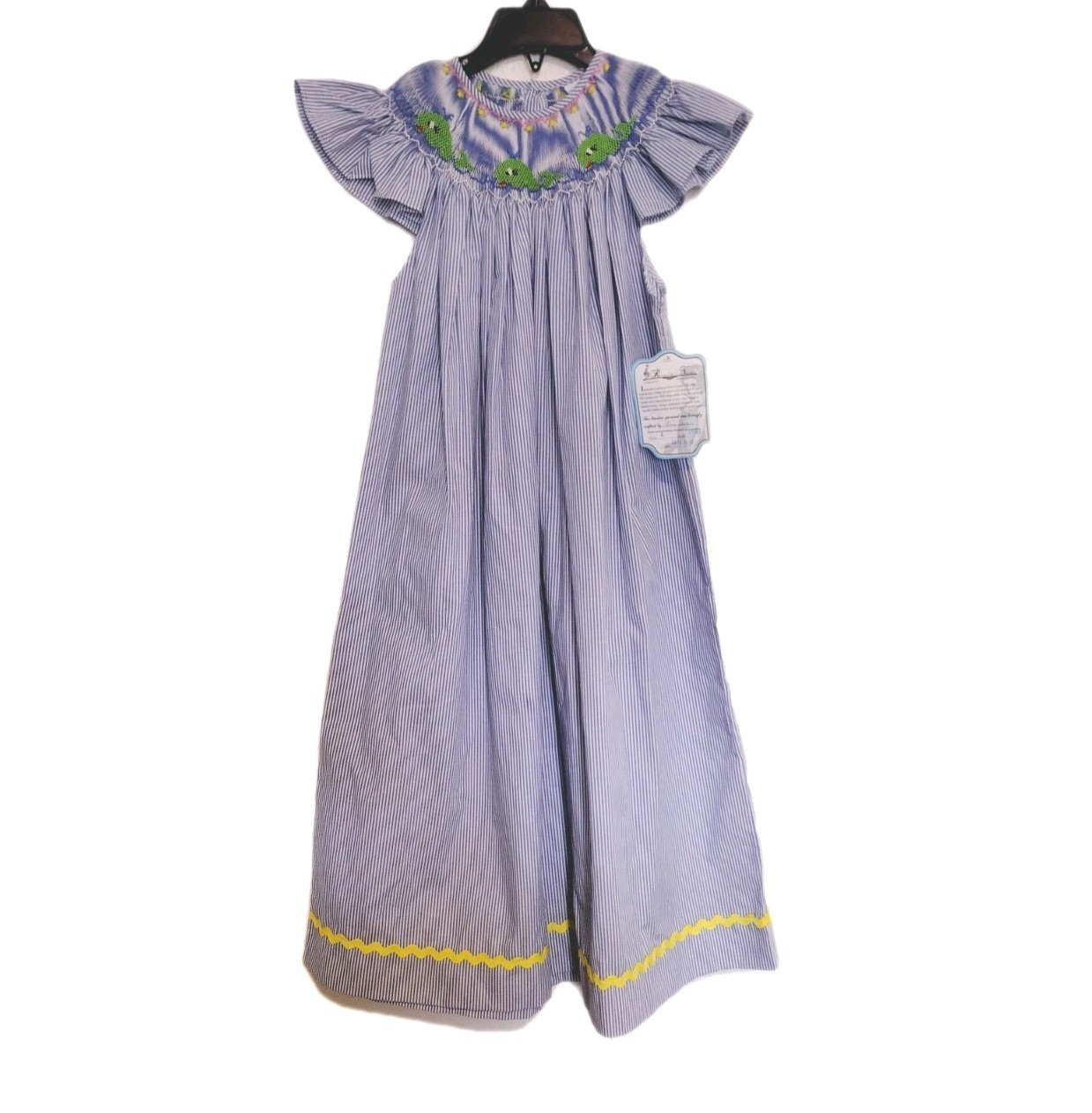 как выглядит Remember Nguyen Size 6 Girls Dress Ocean Whales Blue White Striped Smocked 410AB фото