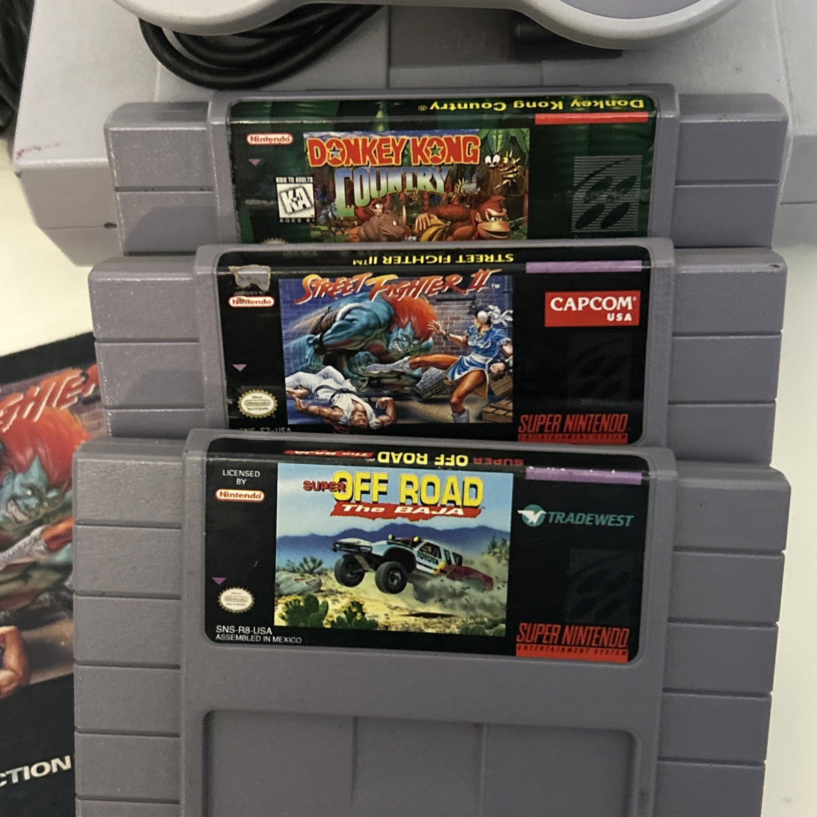 Oem Original Super Nintendo System Console Game Bundle Street Fight Donkey Kong