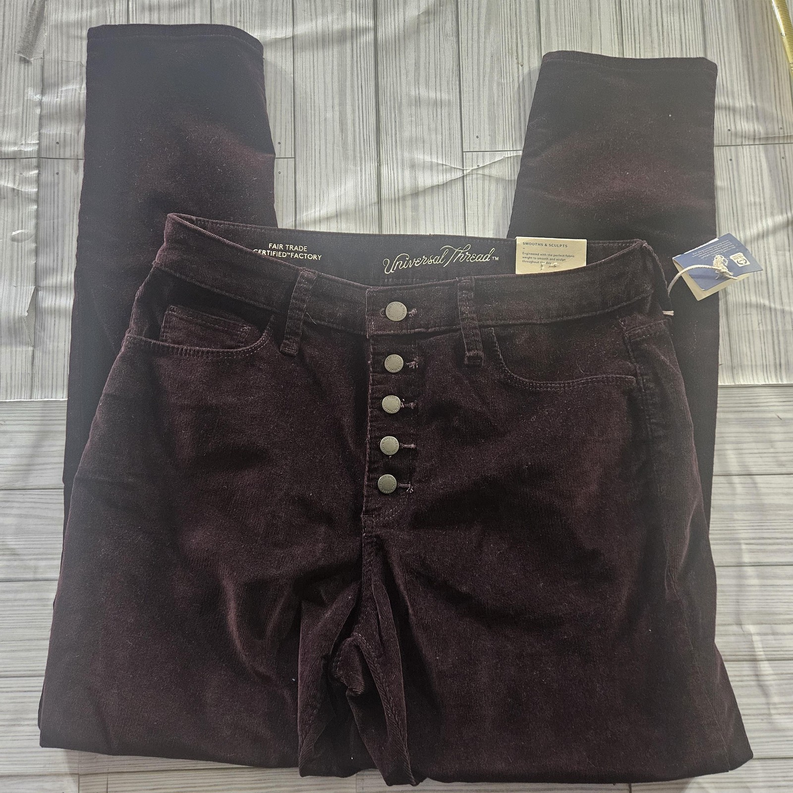 Universal Thread Pants Womens 10/30R Burgundy Corduroy Button Fly Fair Trade