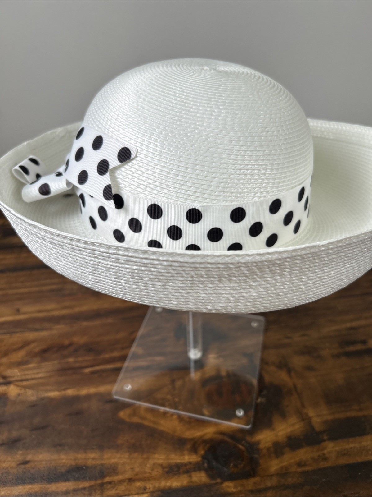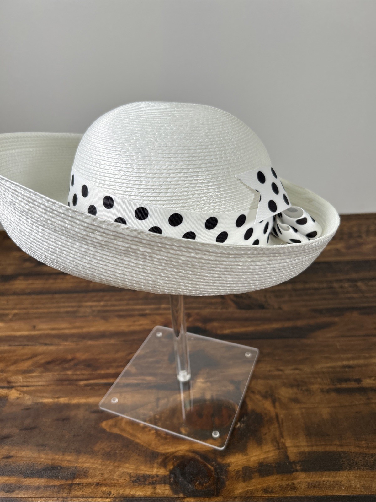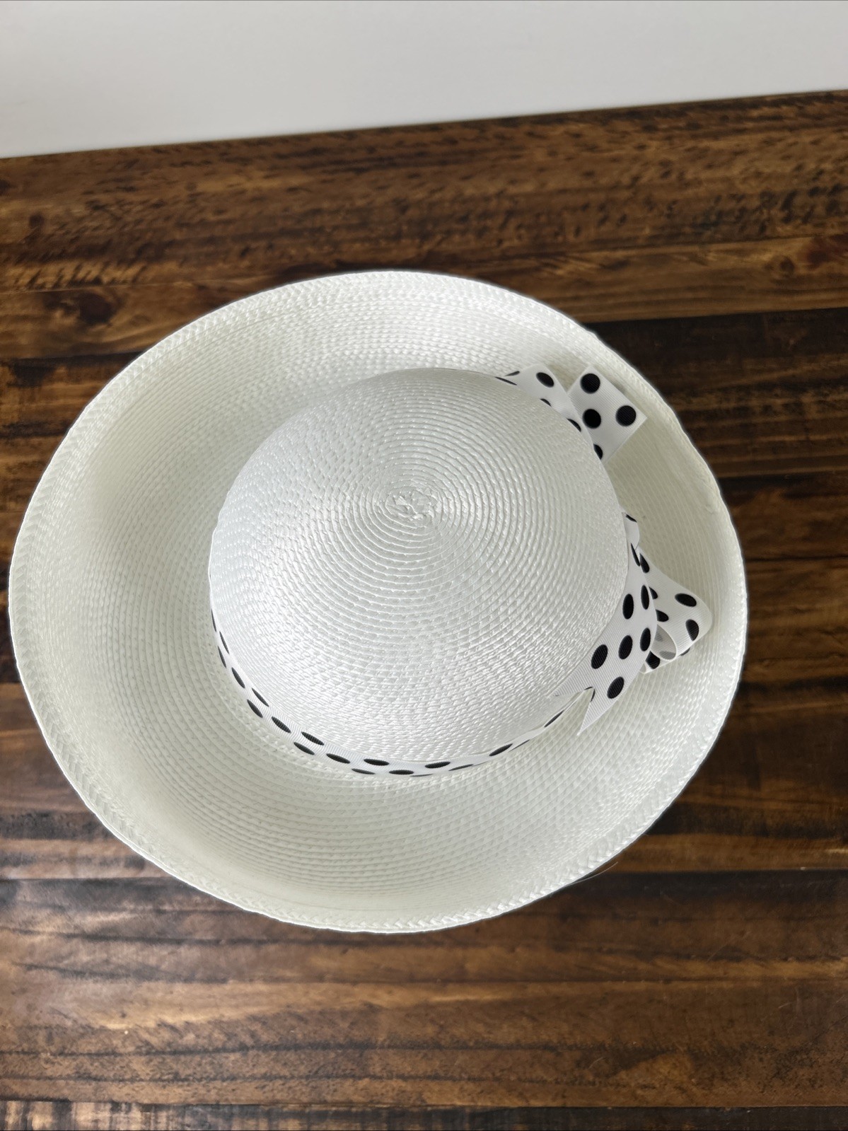 Vtg Ladies White Black Polka Church Kentucky Derby Formal Hat