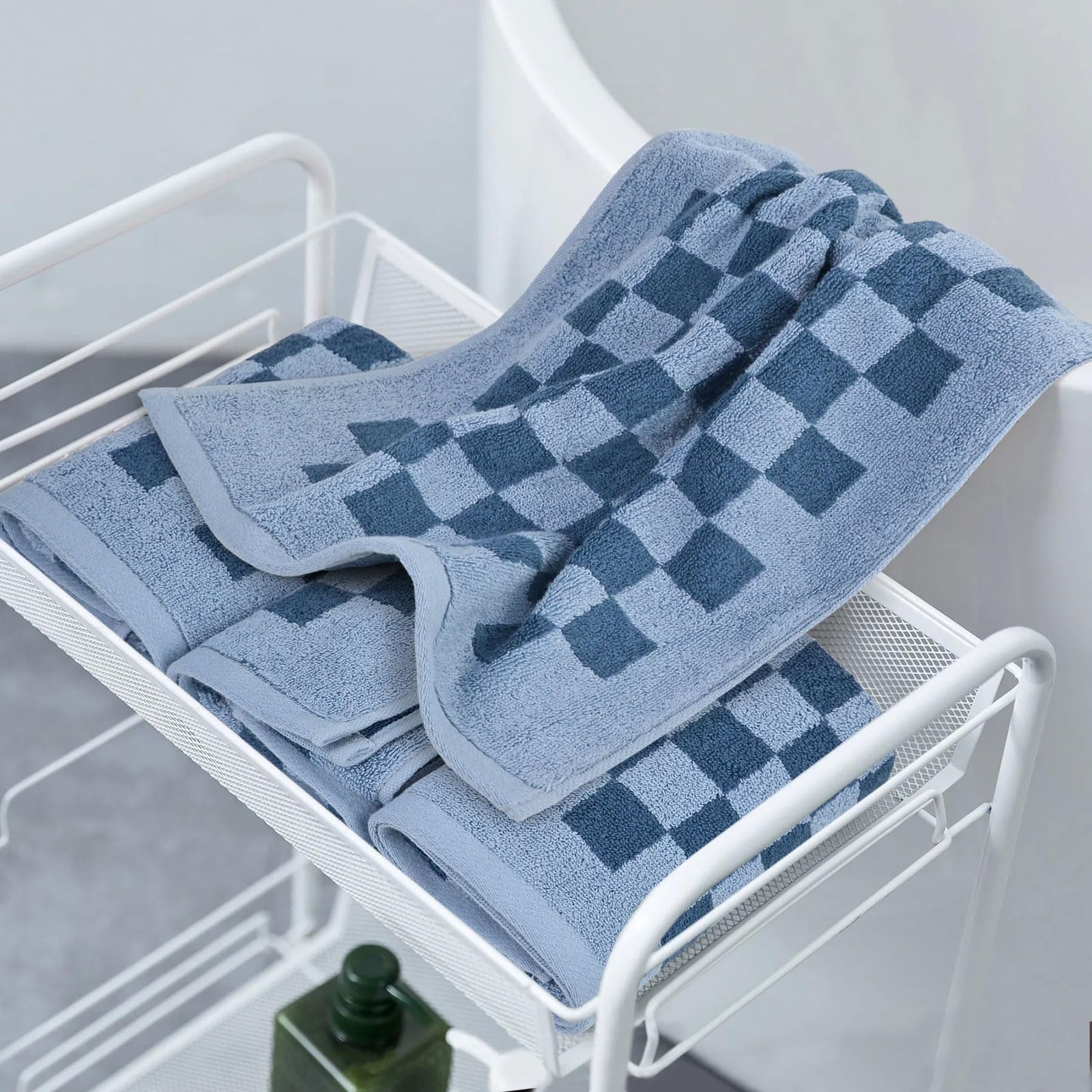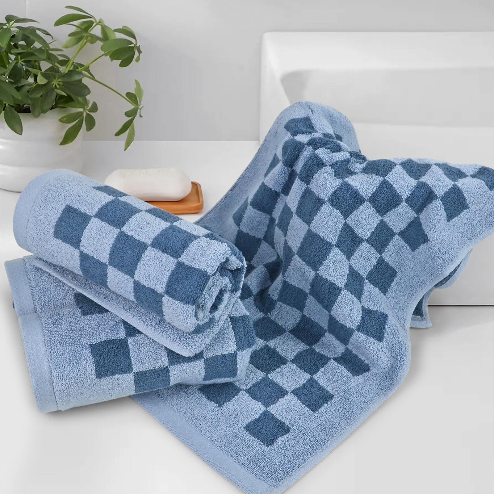 как выглядит 4 PCS Blue Checkered Hand Towels 13x29 Cotton Face Hair Bathroom Decor фото