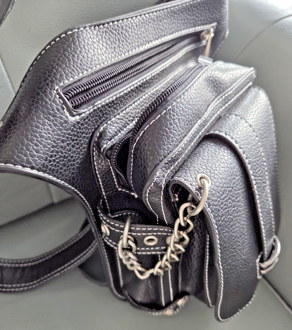 Black PU Leather Hip Waist Bag Gothic Alternative Wear With Leg Strap