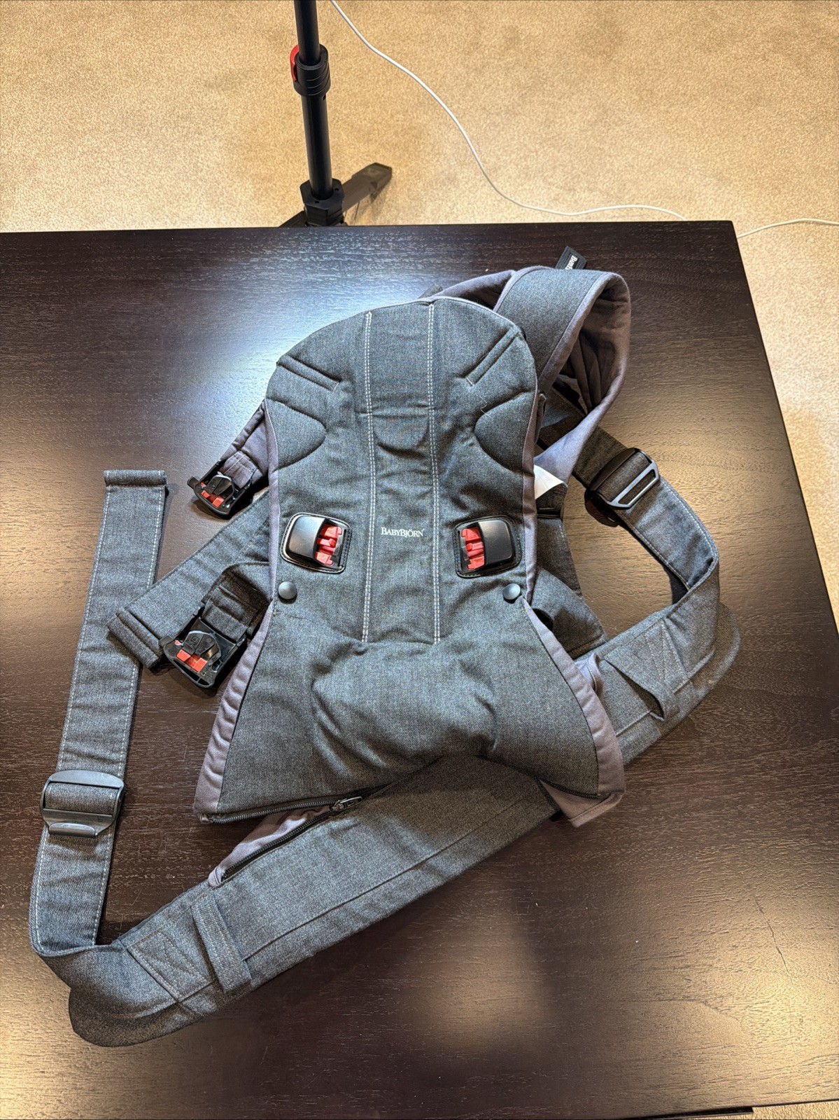 как выглядит "BabyBj rn Baby Carrier One, Cotton, Denim Gray/Dark Gray, 098094US фото