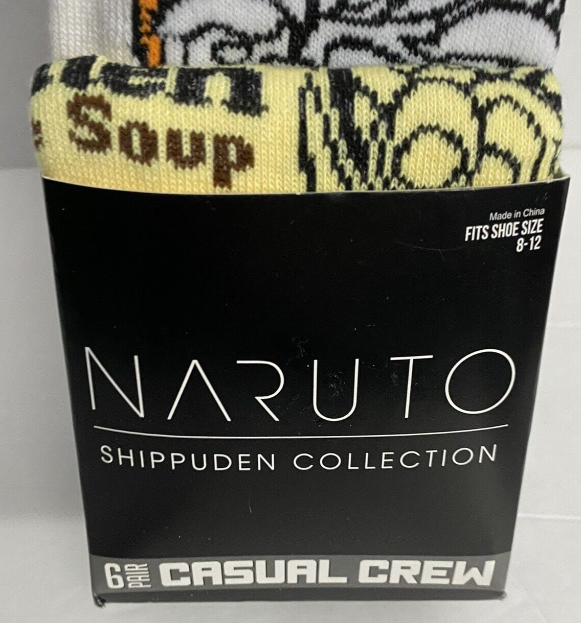 6 Pair NARUTO Shippuden Collection Noodles Men s CREW SOCKS Size 8-12