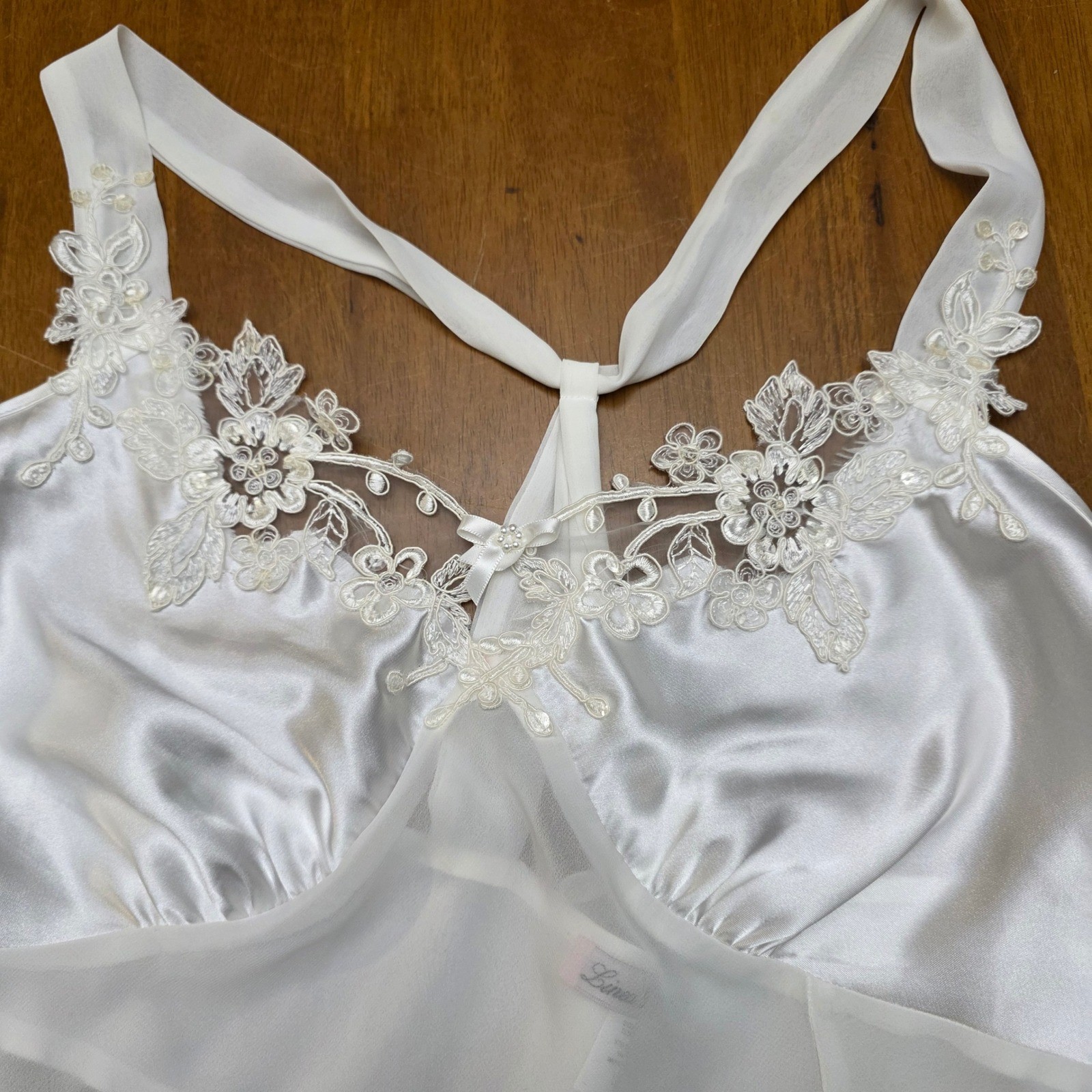 Linea Donatella White Satin Lace Trim Babydoll Nightgown Large Slip Bridal