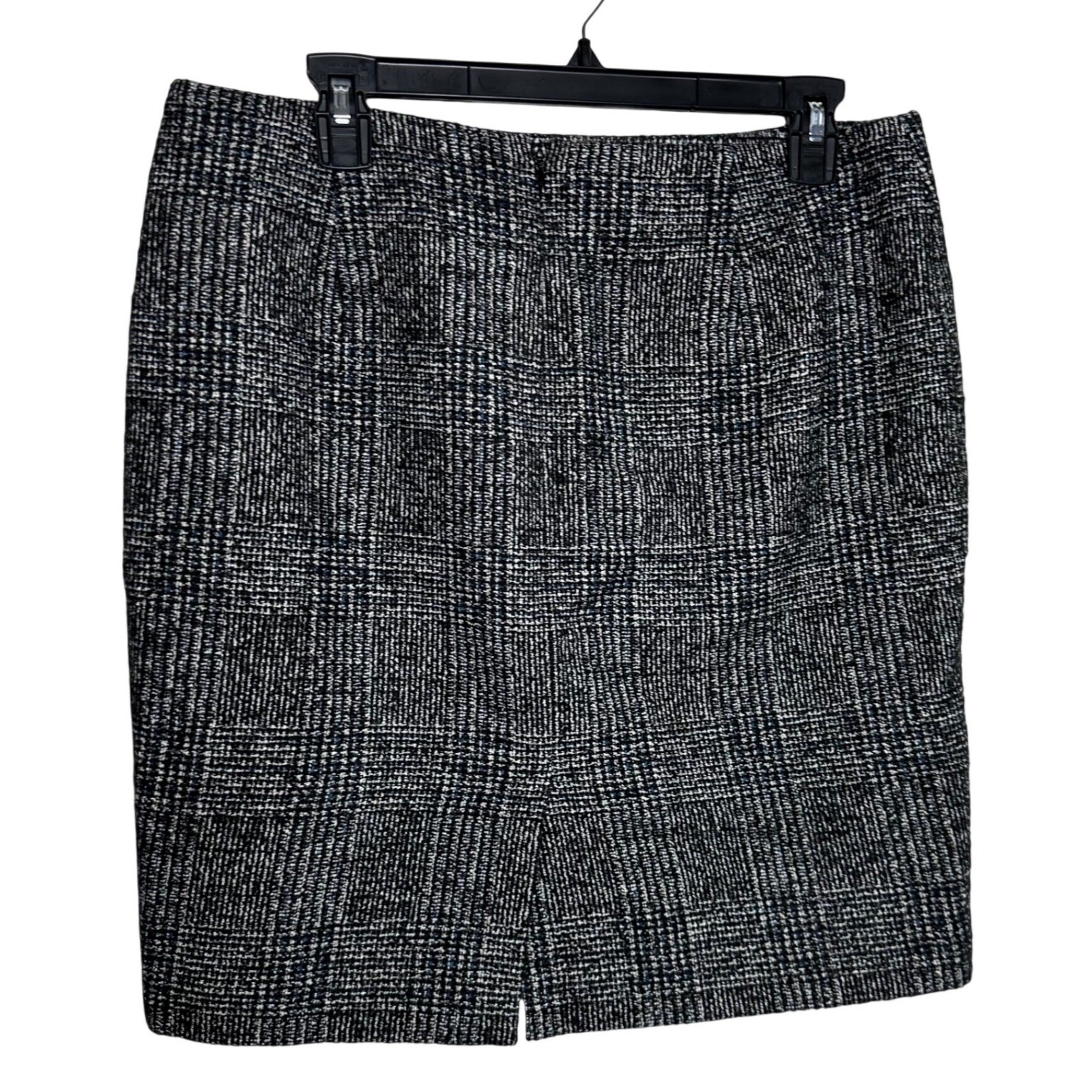 как выглядит Ann Taylor Tweed Wool Blend Pencil Skirt Size 8 Black White Blue Knee Length фото