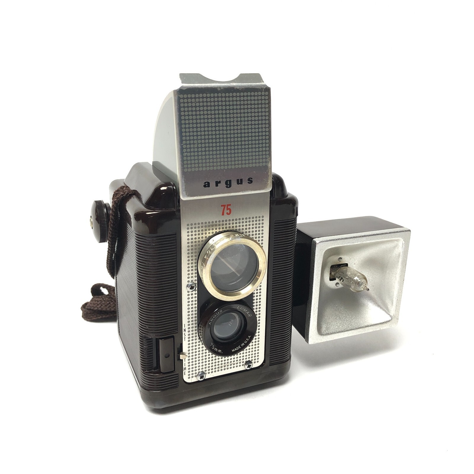 Vintage Argus 75 box camera with flash and Kali Bag case