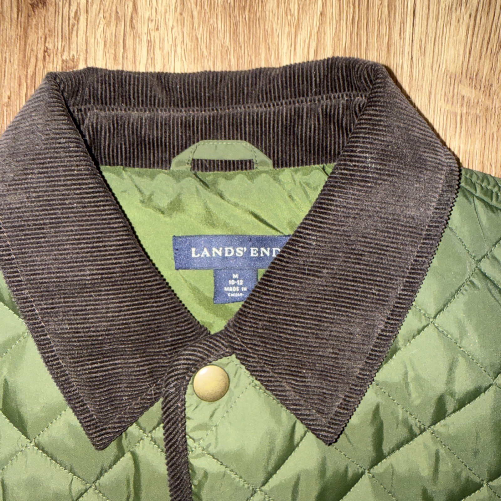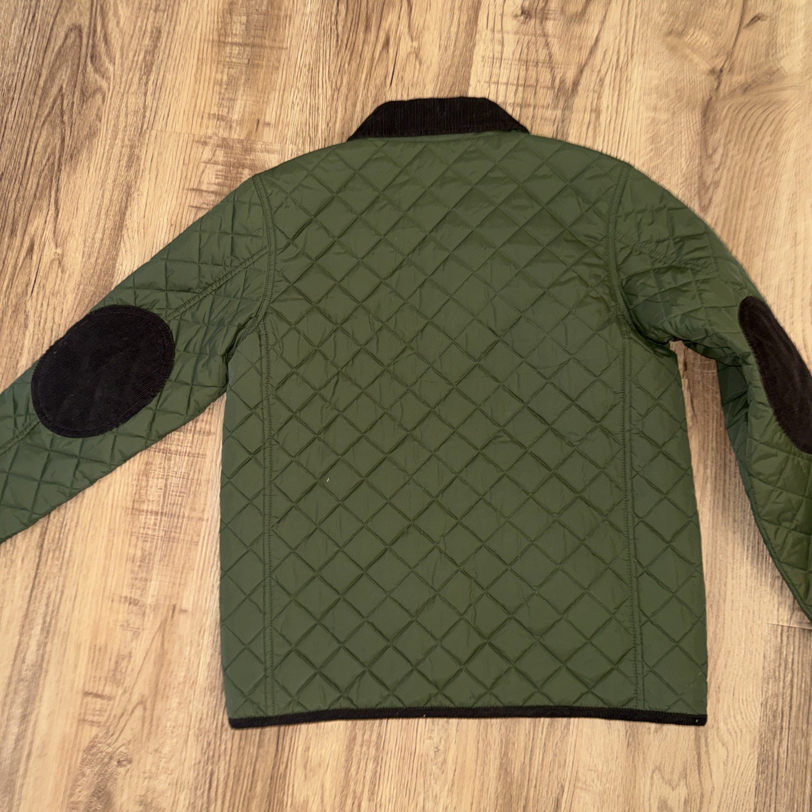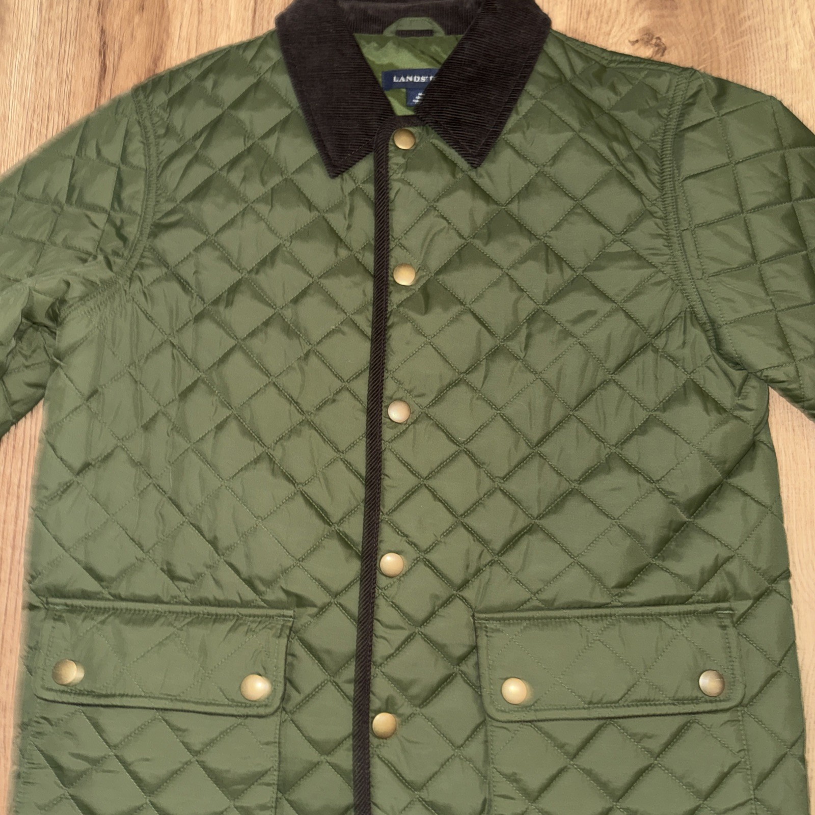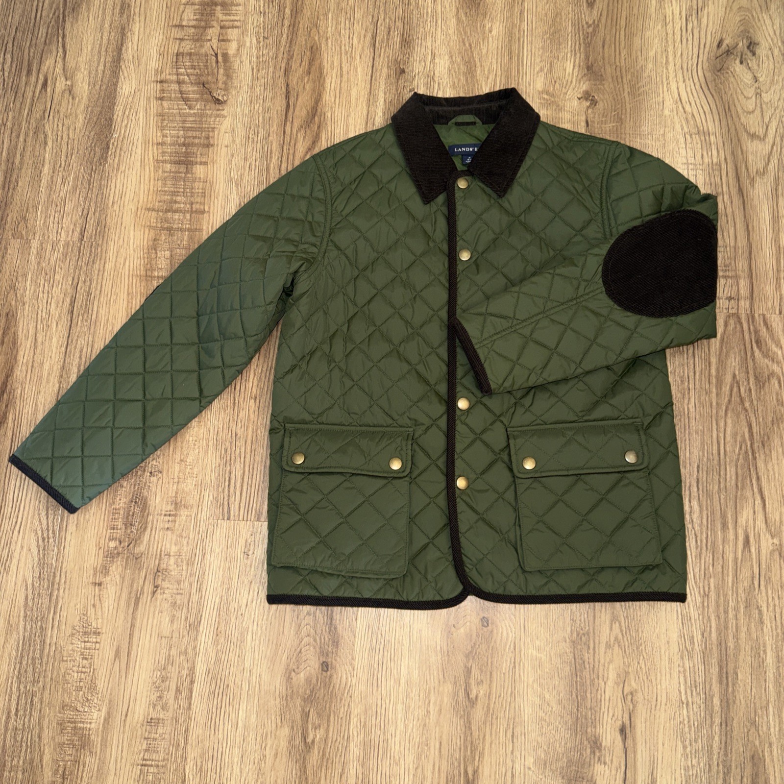 как выглядит Lands End Hunter Green Brown Quilted Size Med 10/12 Boys Barn Coat Jacket EUC фото