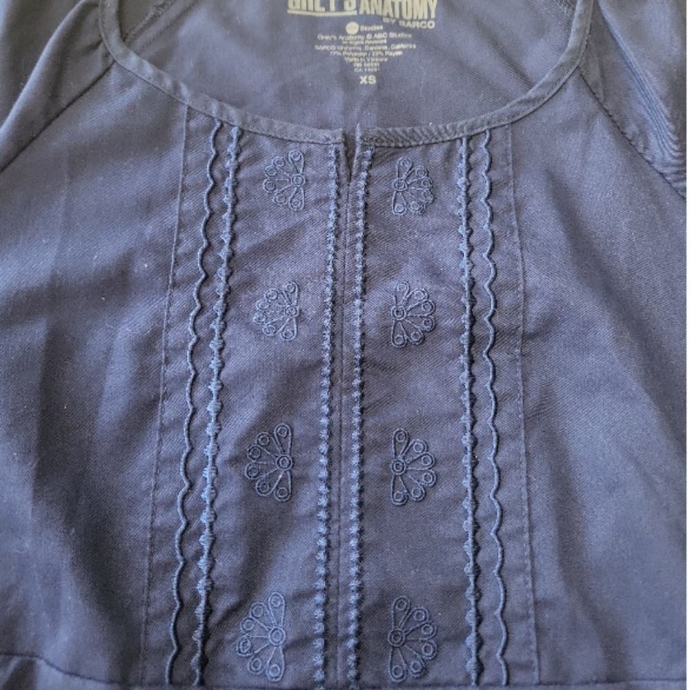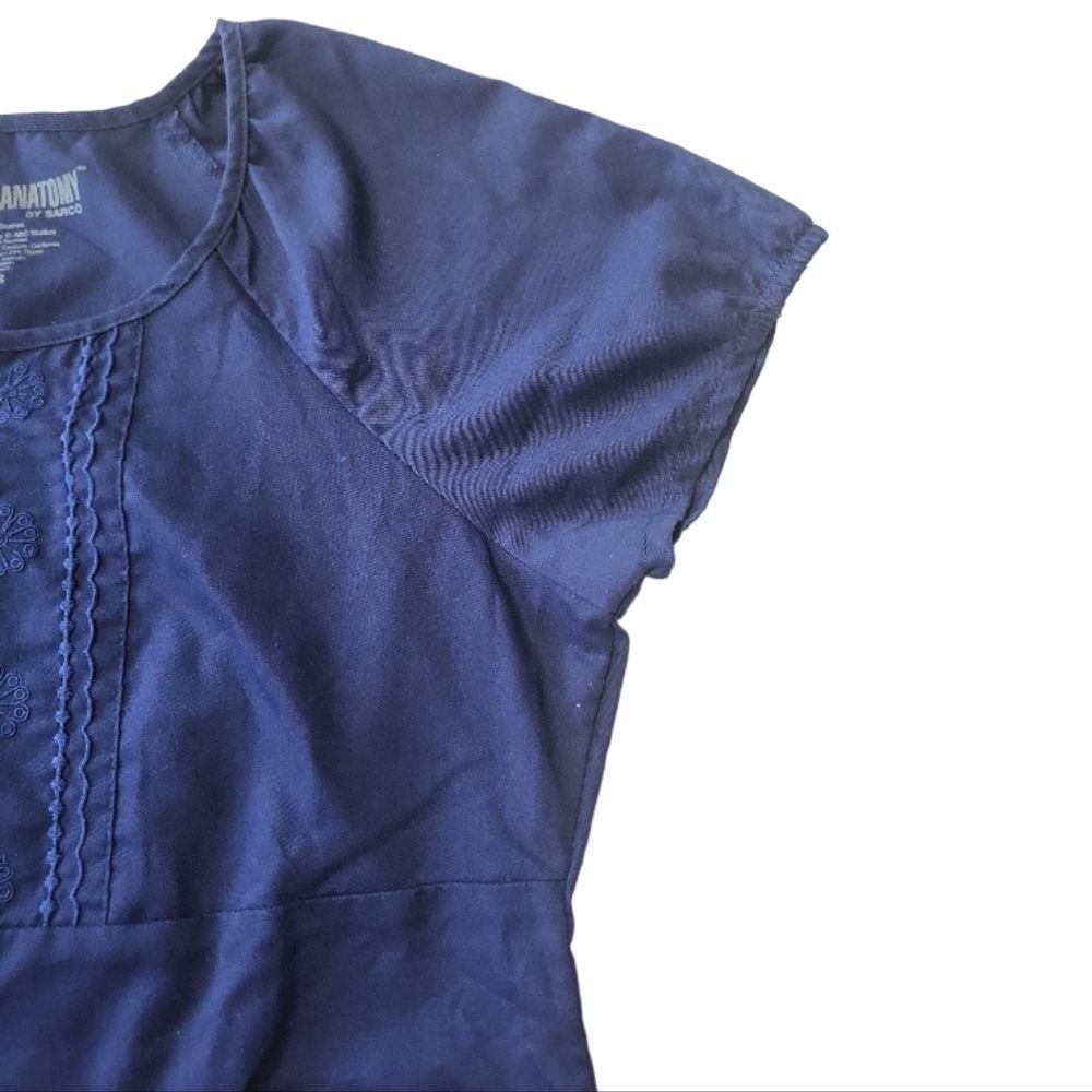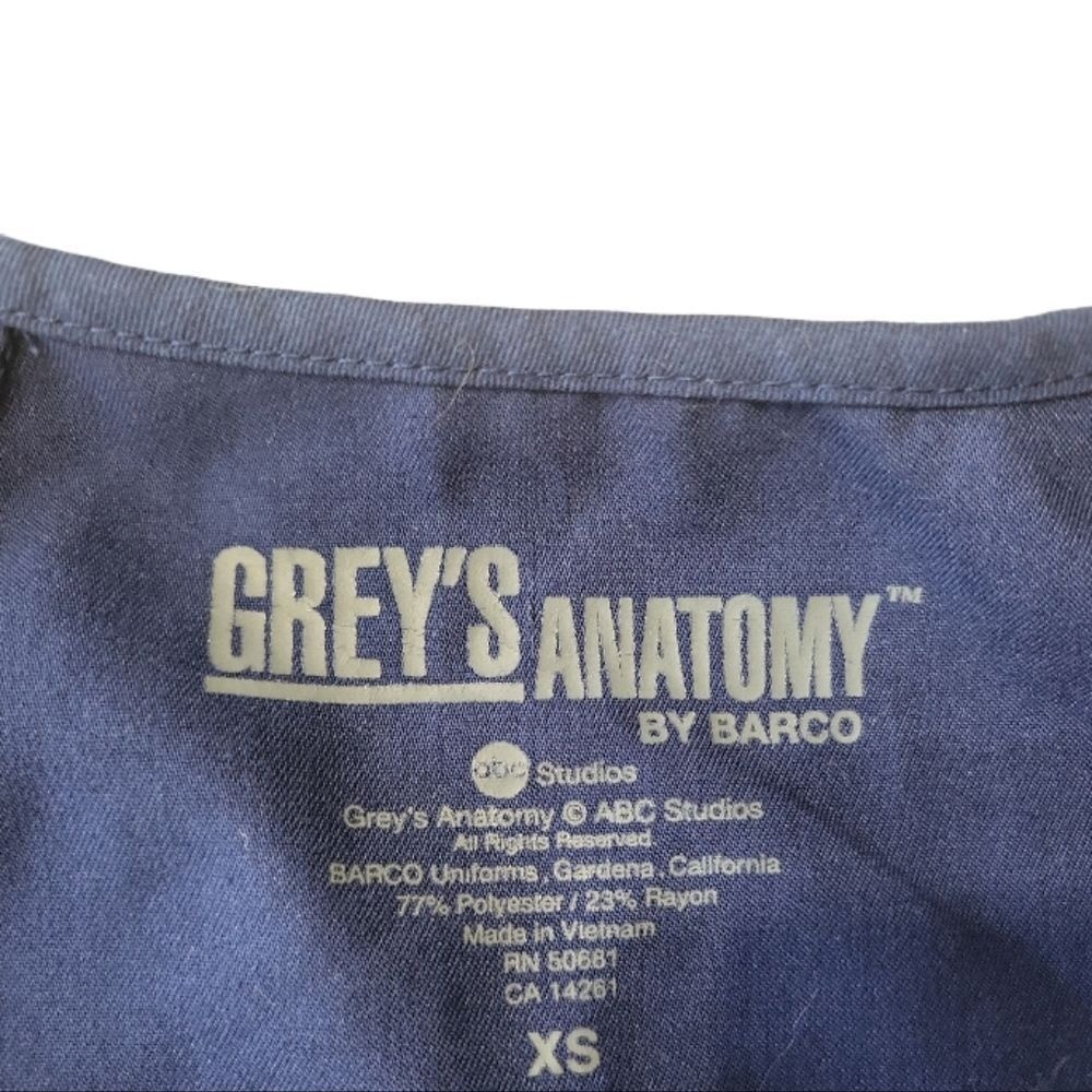 как выглядит GREYS ANATOMY Blue Embrodered 2-Pocket Scrub Top Size XS фото