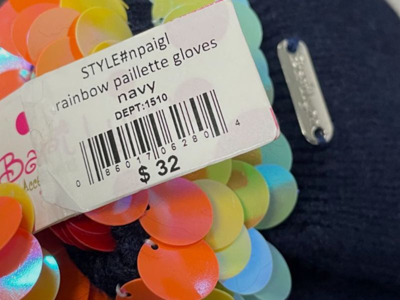 как выглядит 732 Bari Lynn Kids Girls Blue Rainbow Paillette Knit Gloves One Size фото