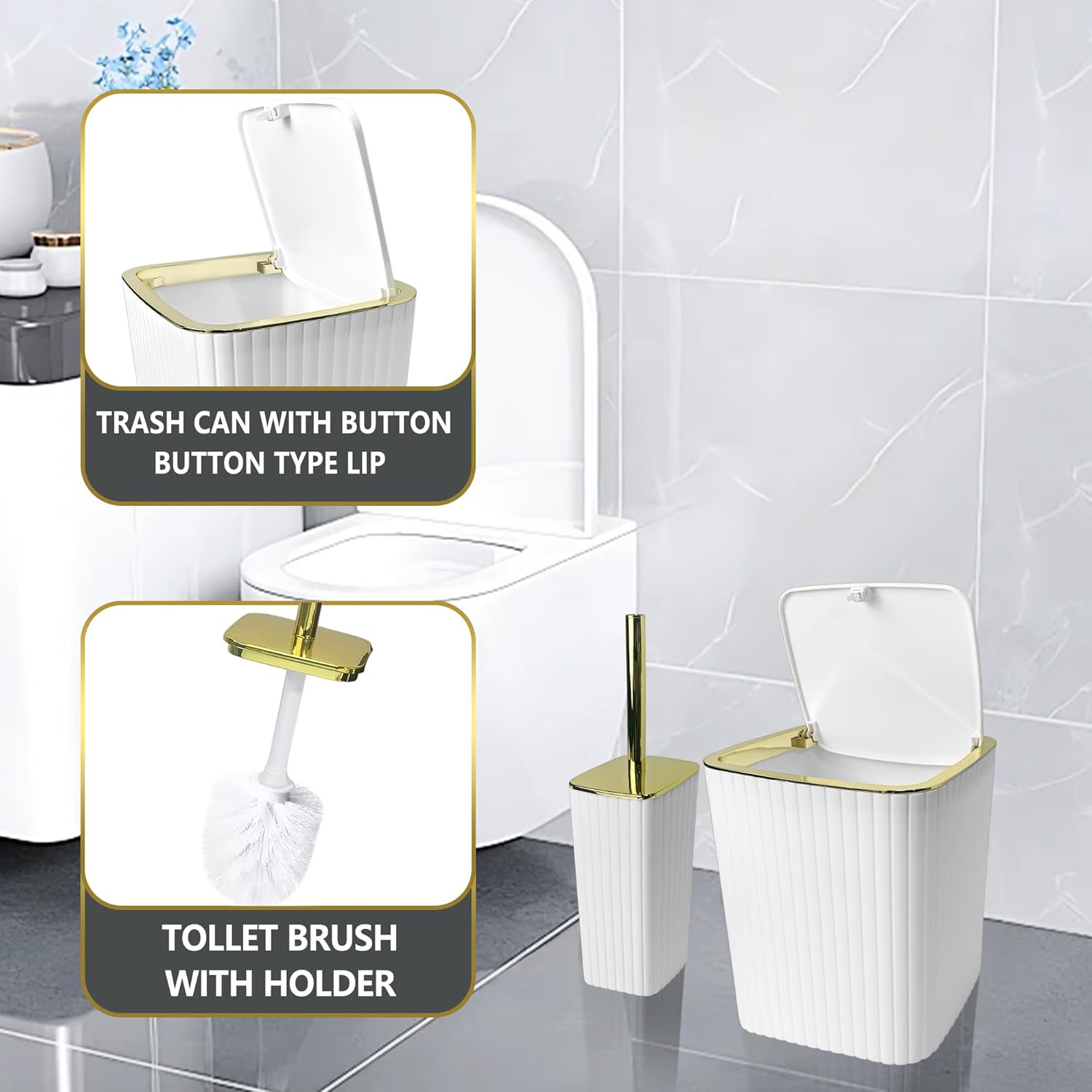 Bathroom Accessory Set White-9Pc Set with Toilet Brush, Trash Can, Soap Dispense