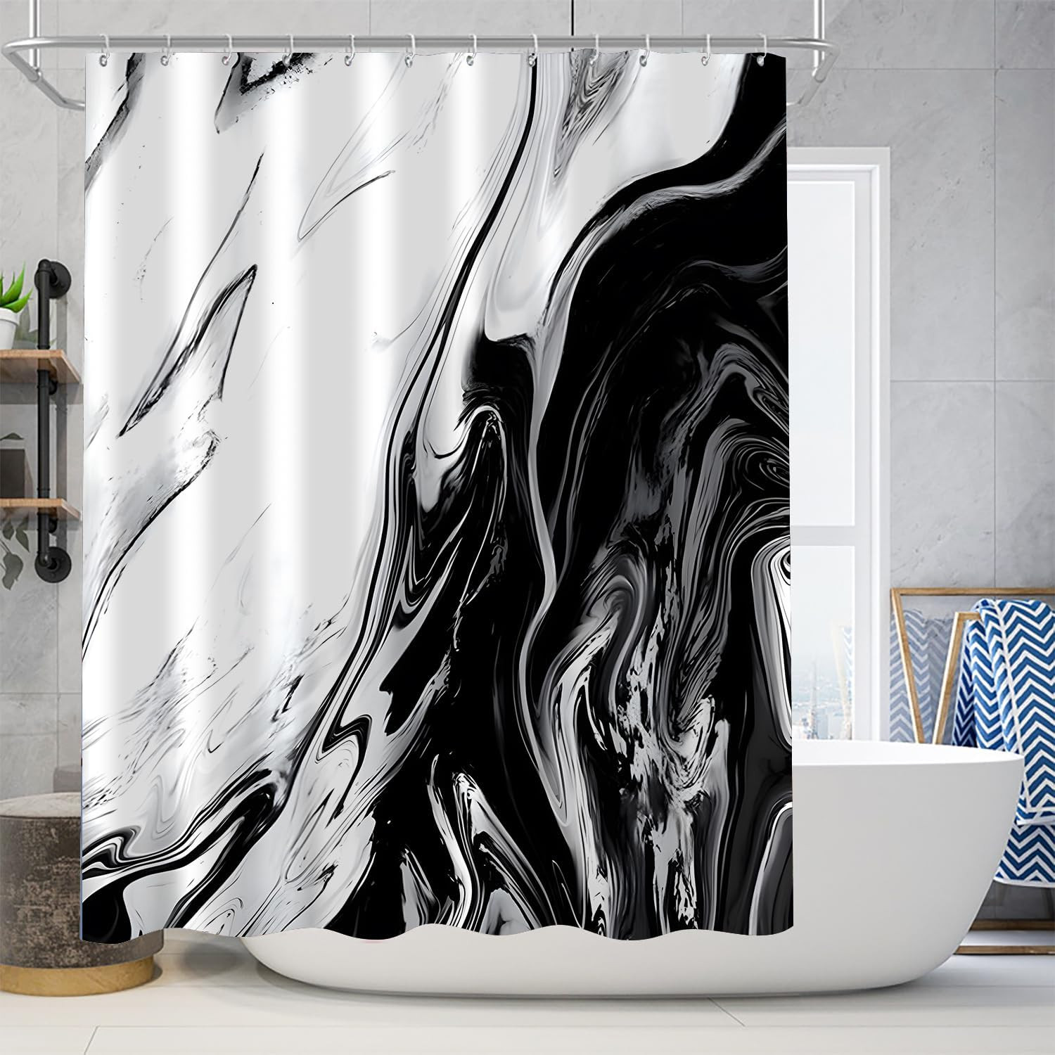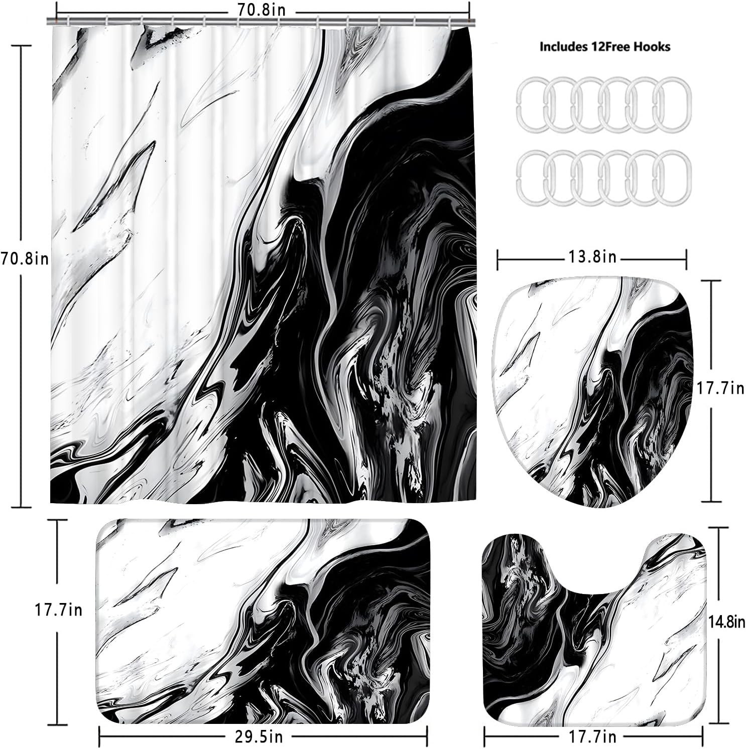 4 Pcs Black and White Shower Curtain Bathroom Sets with Shower Curtain and Rugs