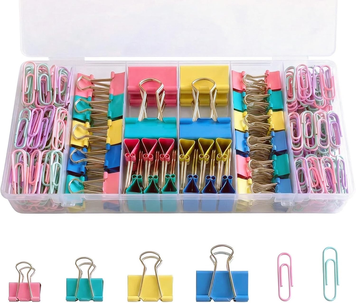 276Pcs Paper Clips and Binder Clips Assorted Sizes Colored Binder Paper Clips Of