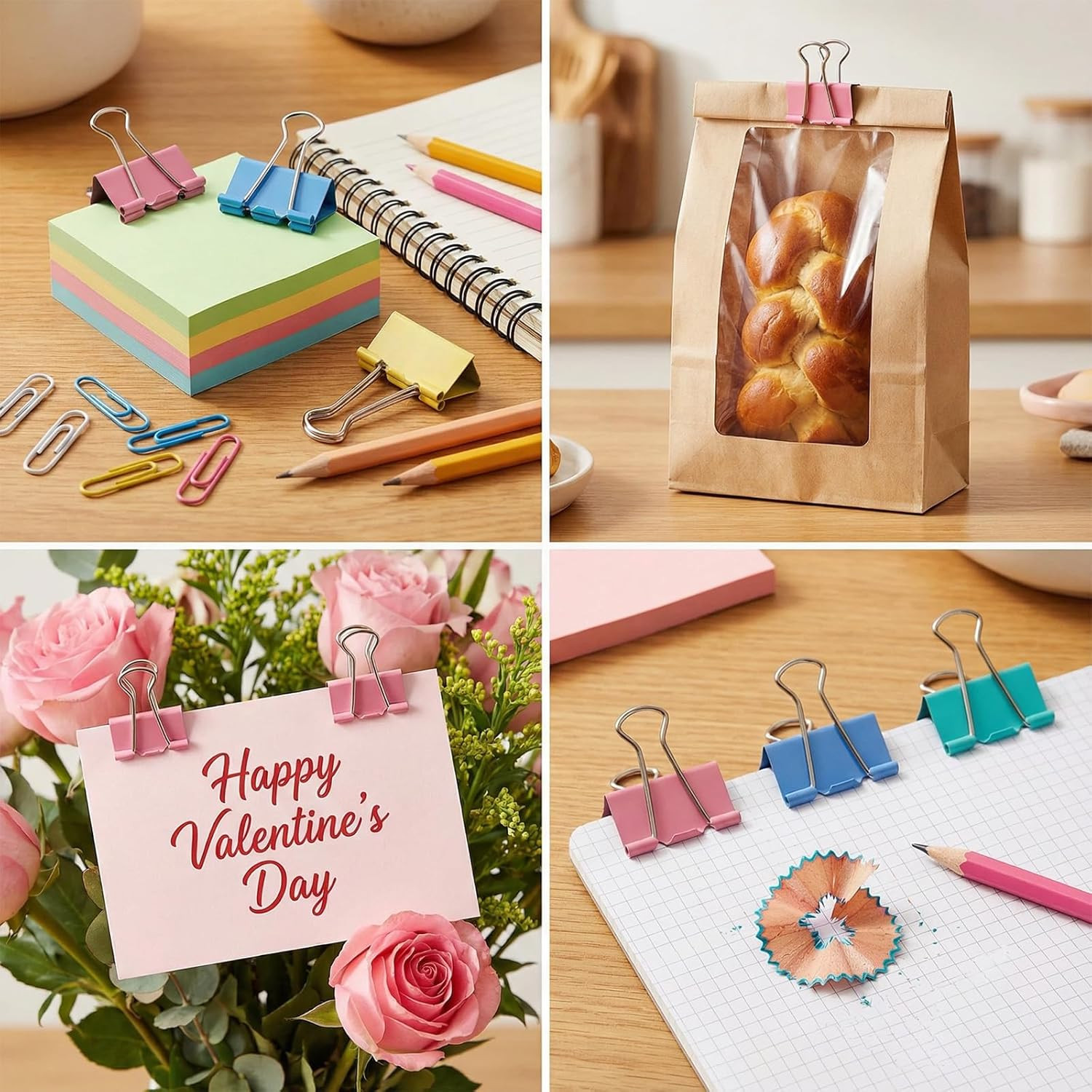 как выглядит 276Pcs Paper Clips and Binder Clips Assorted Sizes Colored Binder Paper Clips Of фото