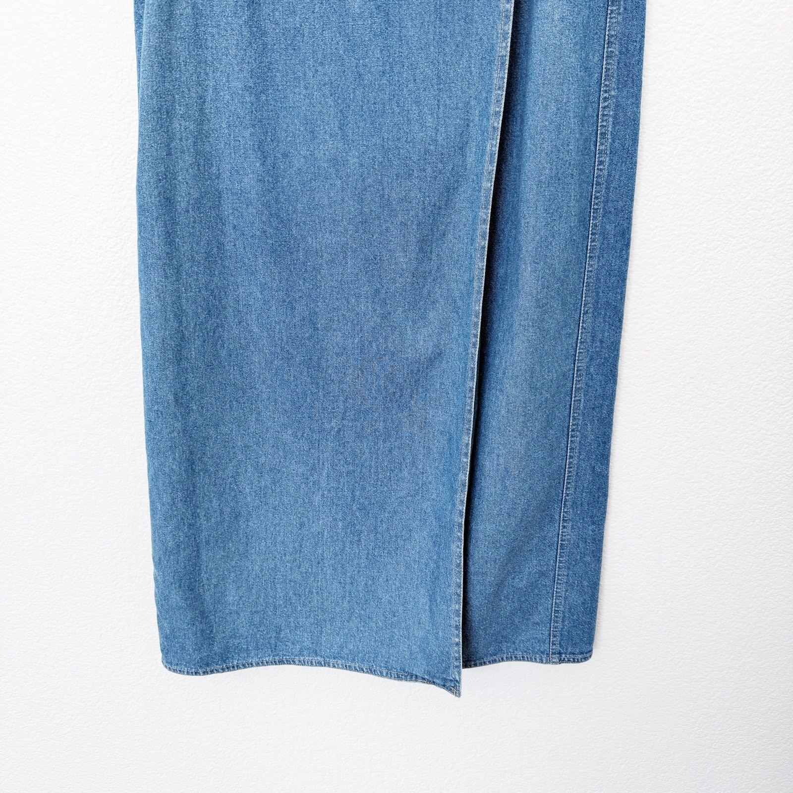 как выглядит Vintage 90s Lizwear Size 12 Medium Wash Denim Wrap Front Straight Midi Skirt фото