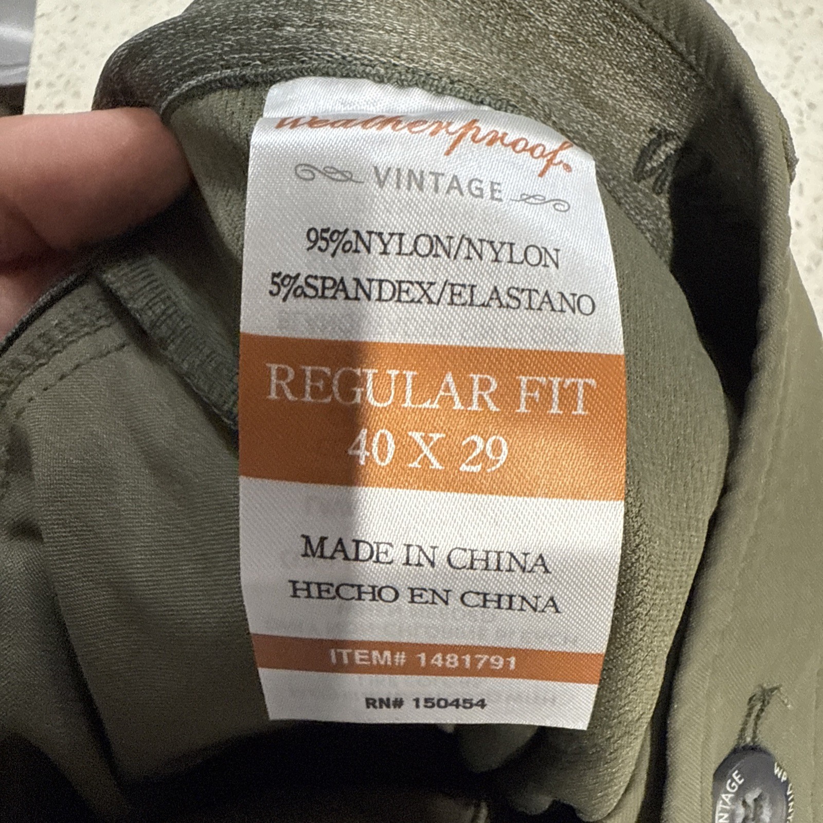 Men's Green Weatherproof Tech Pant 40x29 Stretch Water Resistant