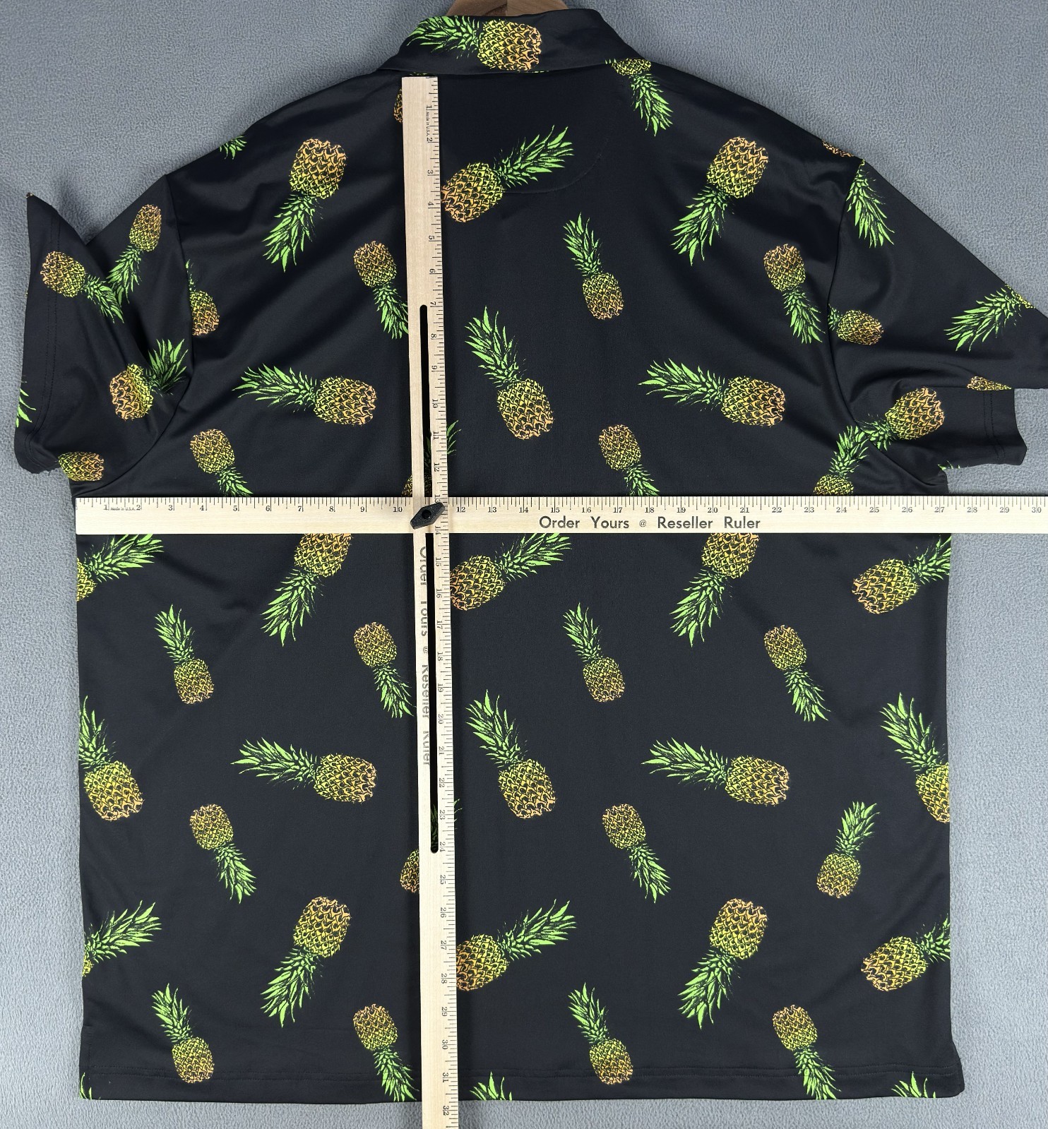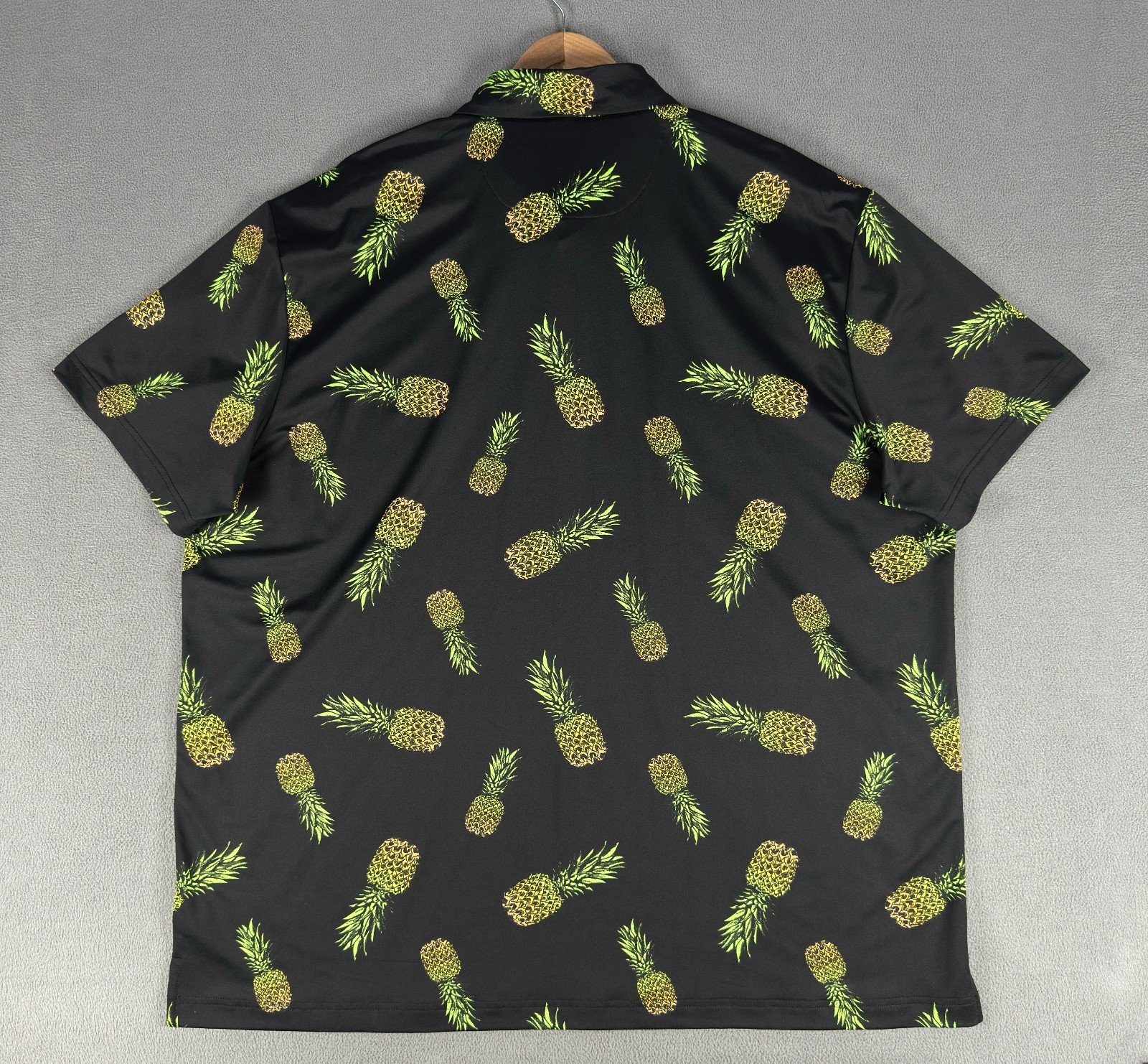 как выглядит Birdie Bound Polo Shirt Mens 3XL Black Pineapple All Over Print Performance Golf фото