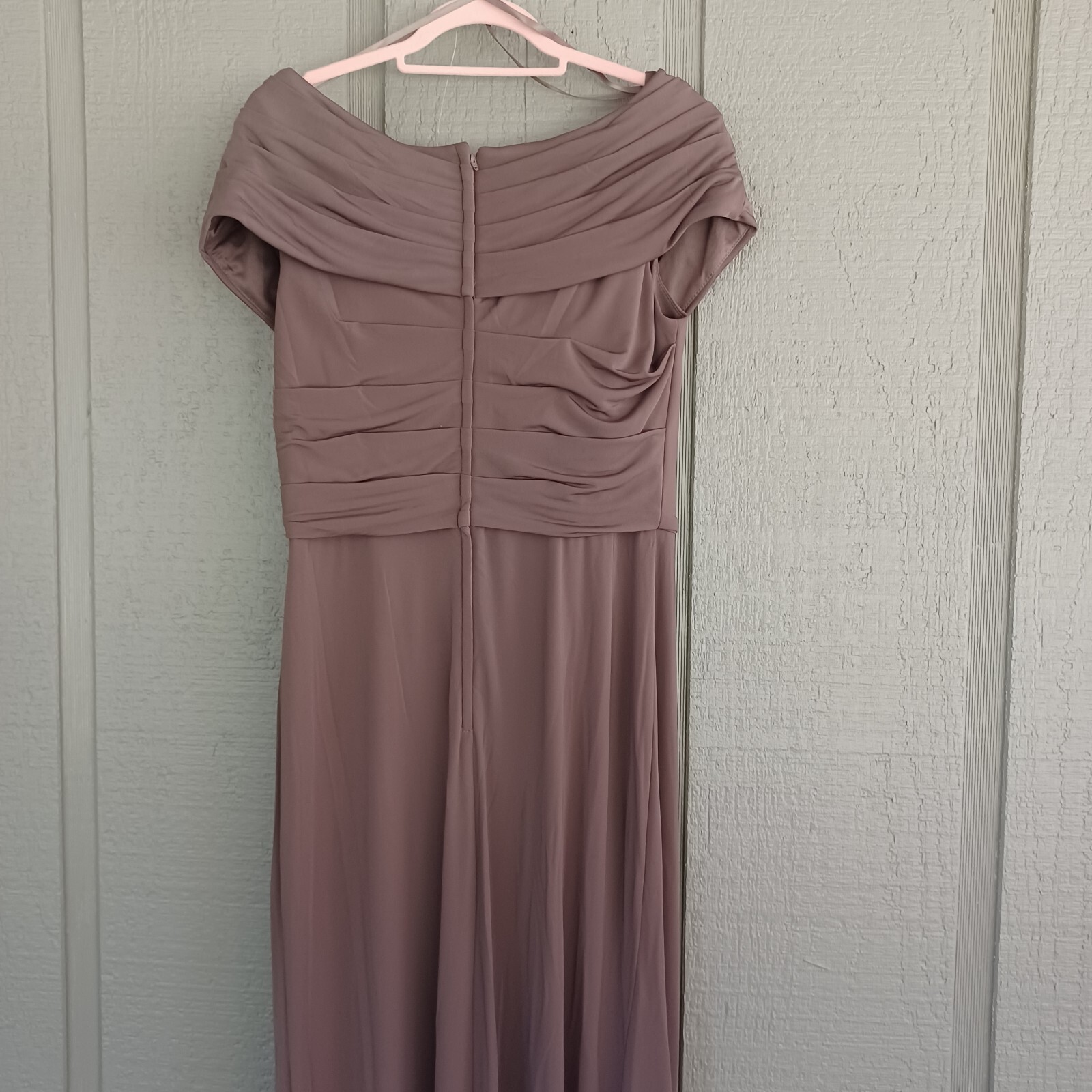как выглядит La Femme Women Ruched Jersey Column Gown Size 12 Mother Of Bride Dress In Cocoa фото