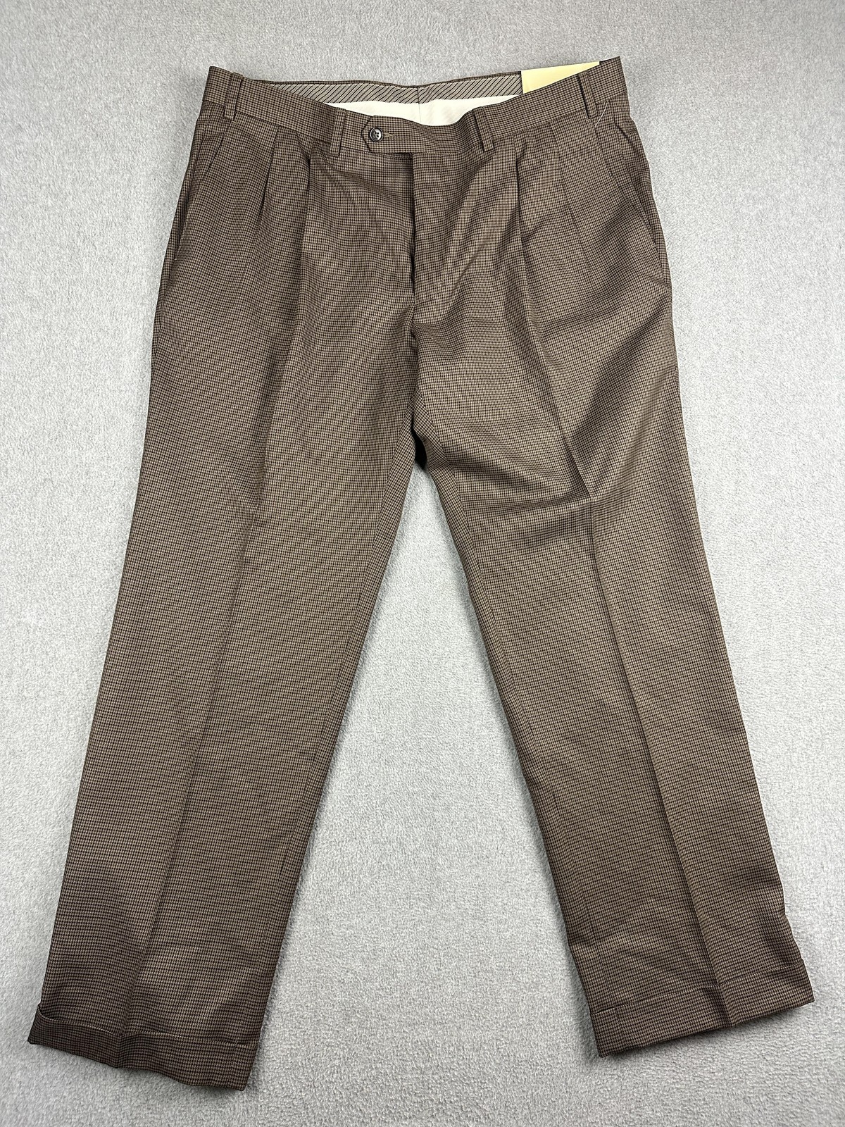 как выглядит Lauren Ralph Lauren Dress Pants Mens 38x30 Brown Check Pleated Cuffed NWT фото
