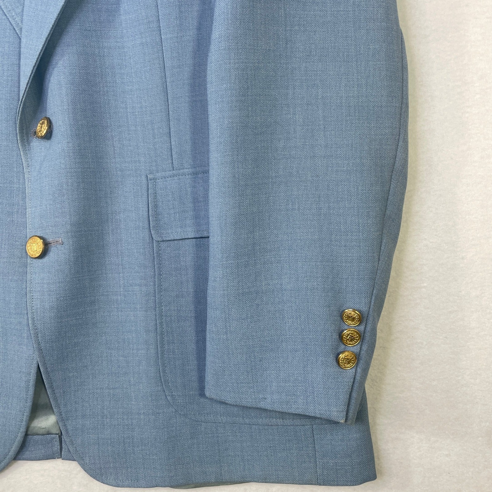 Botany 500 Mens Vintage Blazer Light Blue Gold Crest Button Sport Coat USA Made