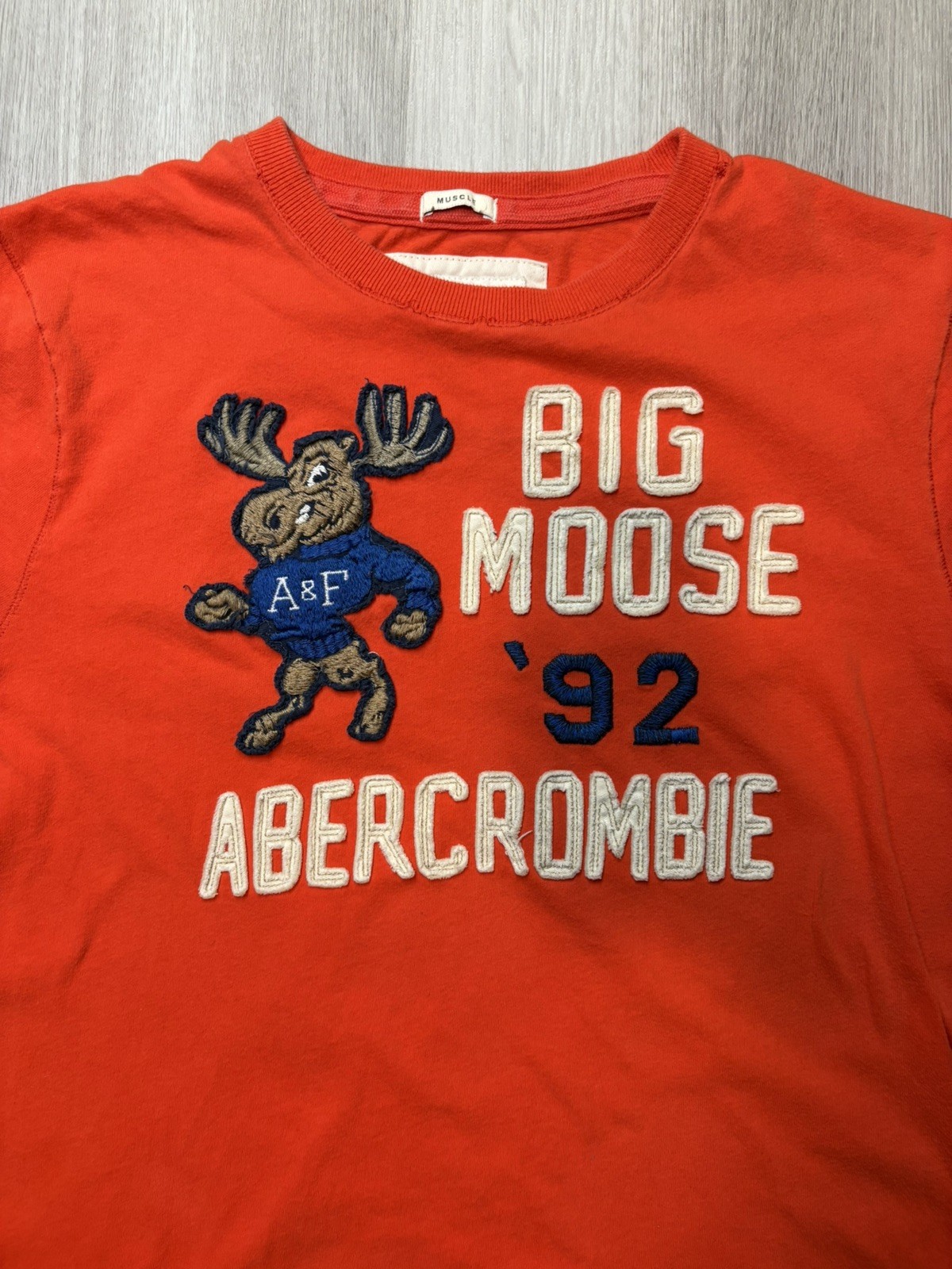 как выглядит Abercrombie Fitch Muscle Shirt Mens 2XL XXL Moose Embroidered Vintage 1990s RARE фото