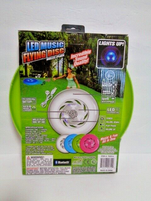LED Music Flying Disc Wireless Speaker Waterproof Green Bluetooth, NEW