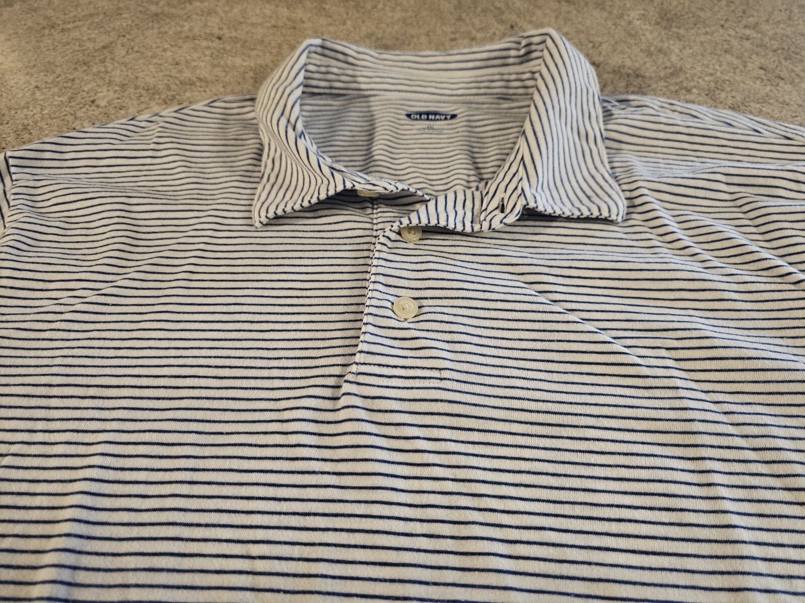 как выглядит Old Navy Mens White And Blue Striped Polo Shirt Size 2XL фото