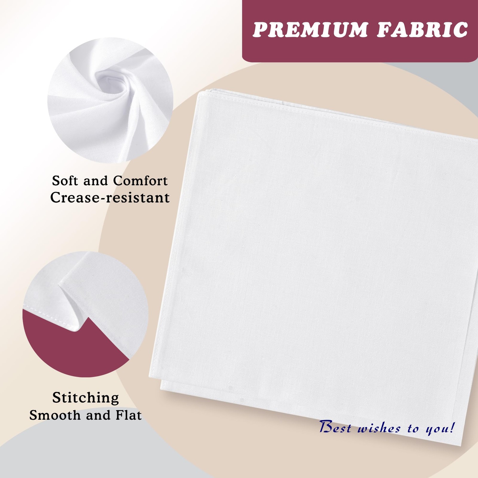 Premium Cotton Blend Handkerchiefs Super Absorbent Wrinkle Resistant 16 Inch