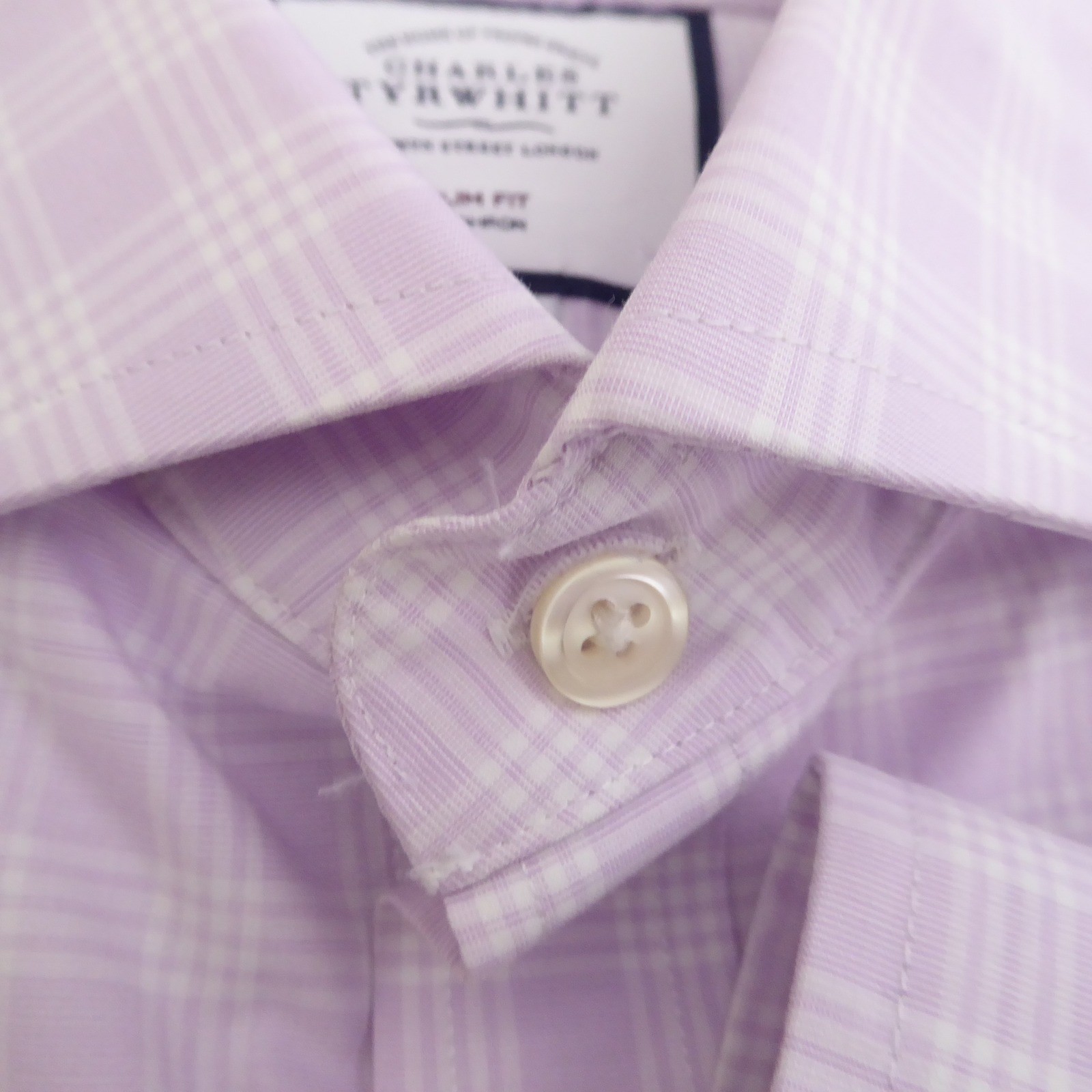 как выглядит Charles Tyrwhitt Mens Dress Shirt Purple Plaid Non-Iron Cotton 16/33 Slim Fit фото
