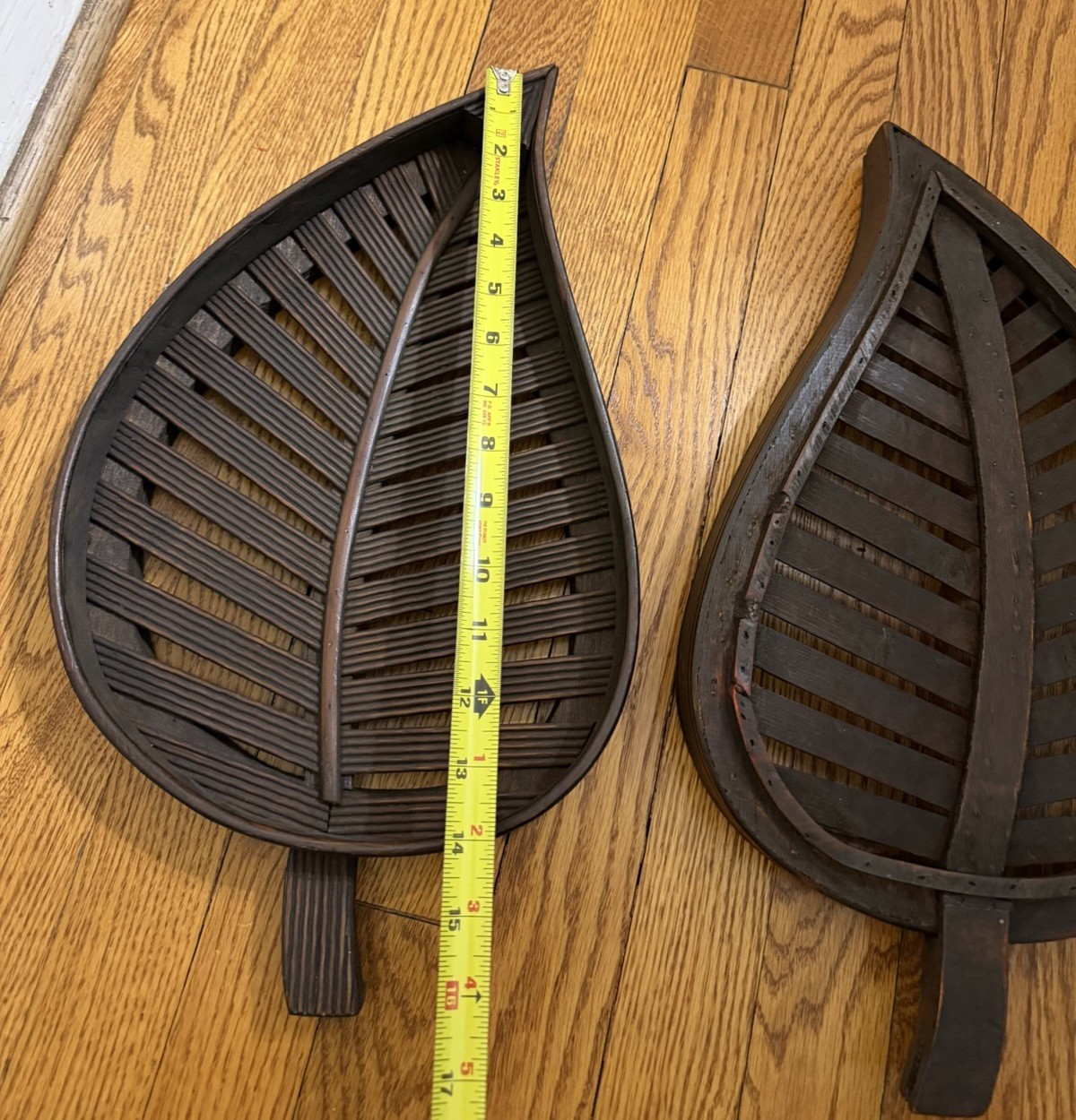 Vintage Carved Wooden Leaf Dish Decor Lot Of 2