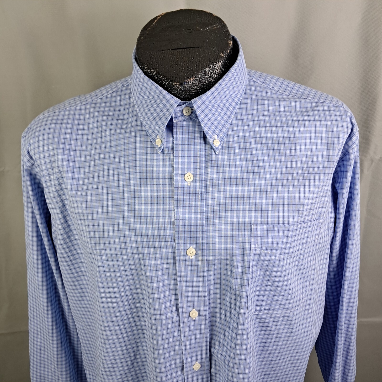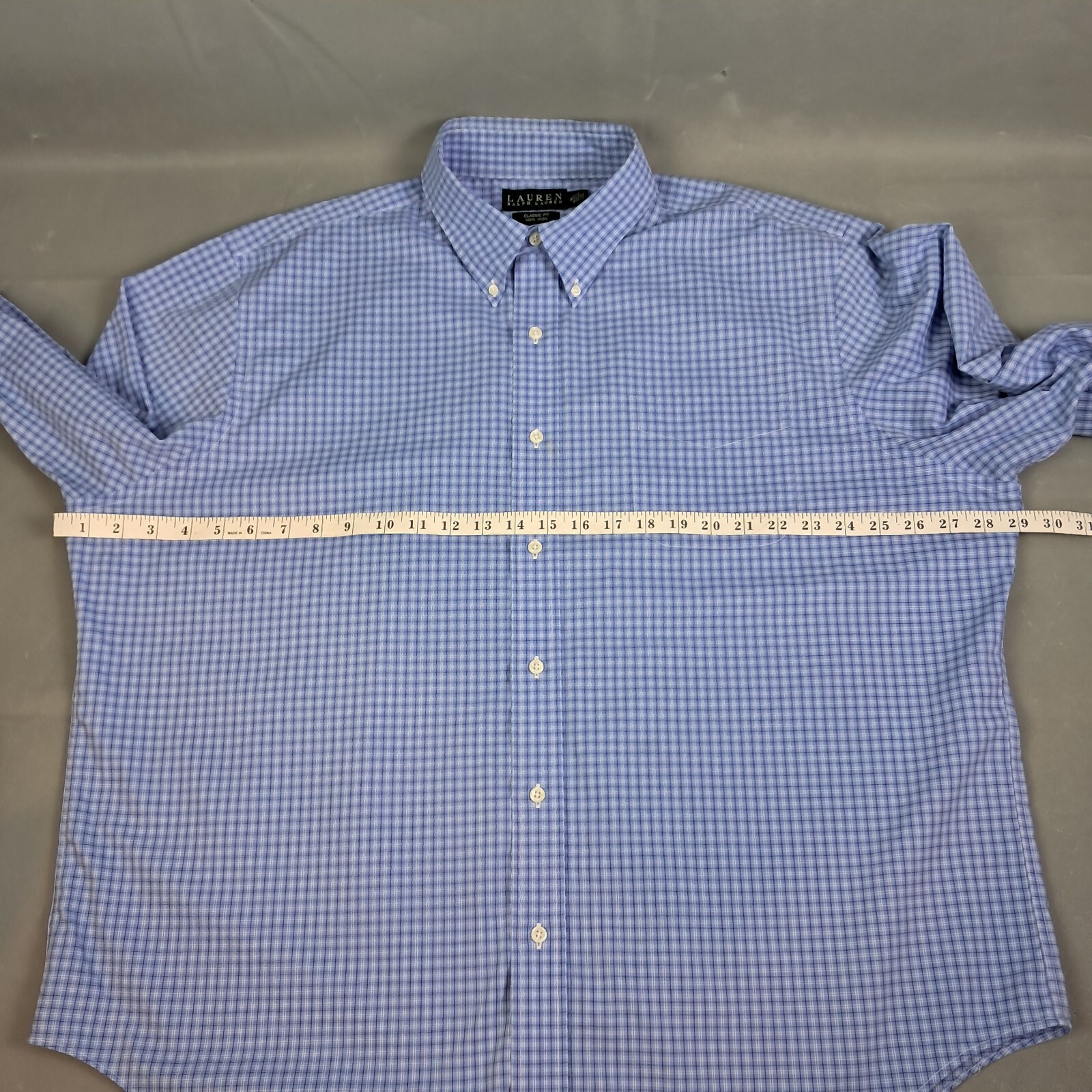 как выглядит LAUREN Ralph Lauren Shirt Size 18 36/37 Mens Classic Fit Blue Check Button Down фото