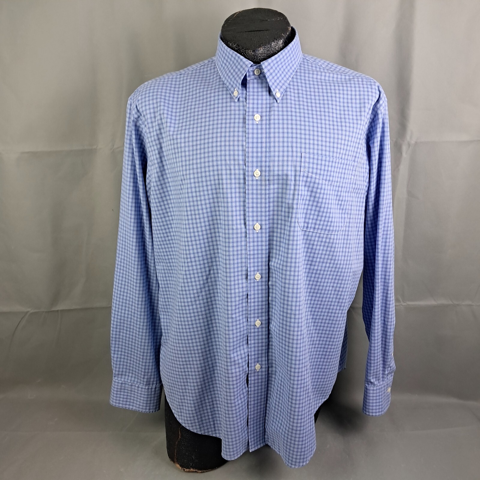 LAUREN Ralph Lauren Shirt Size 18 36/37 Mens Classic Fit Blue Check Button Down