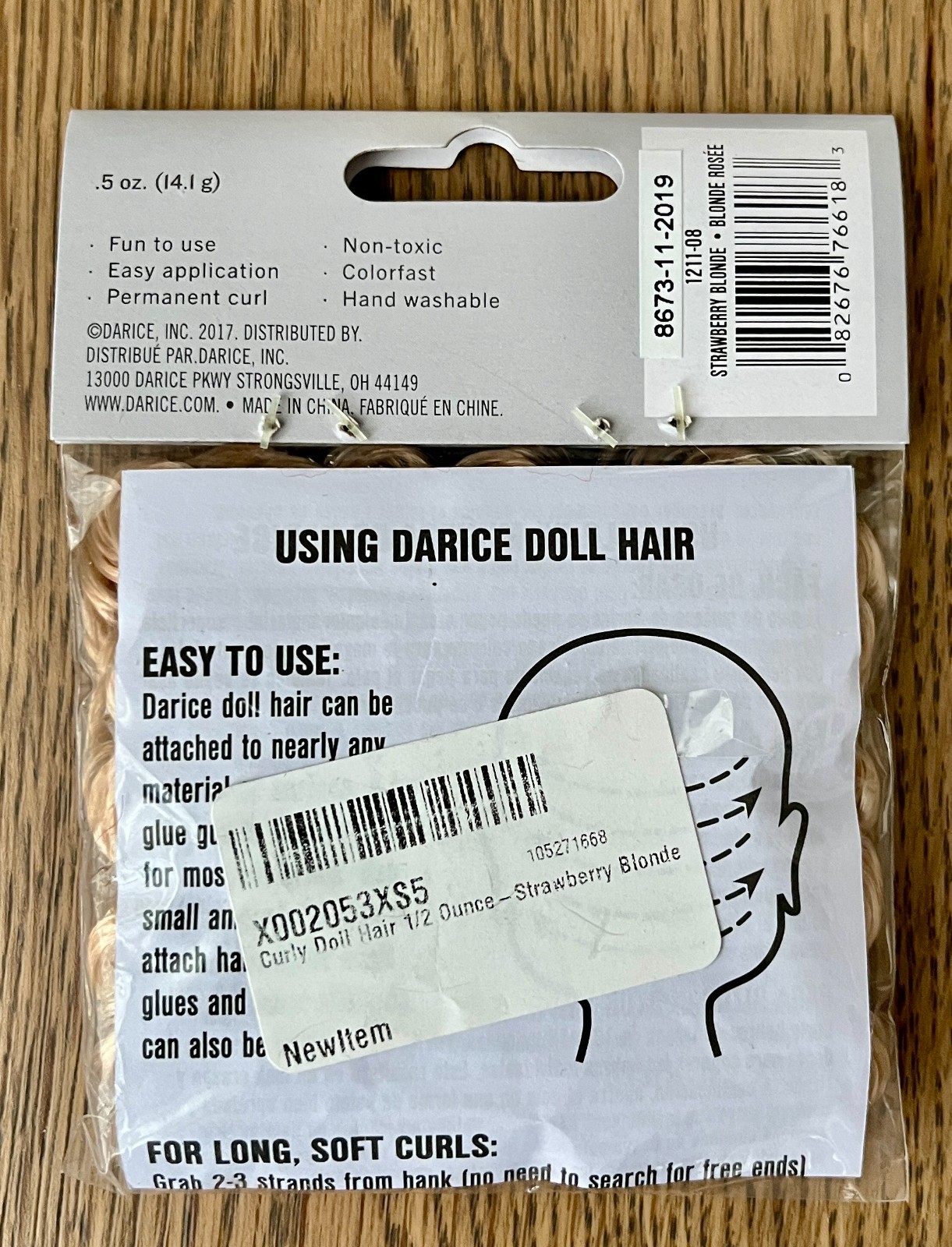 как выглядит Darice - .5 oz. Curly Doll Hair - Strawberry Blonde - New in Package фото