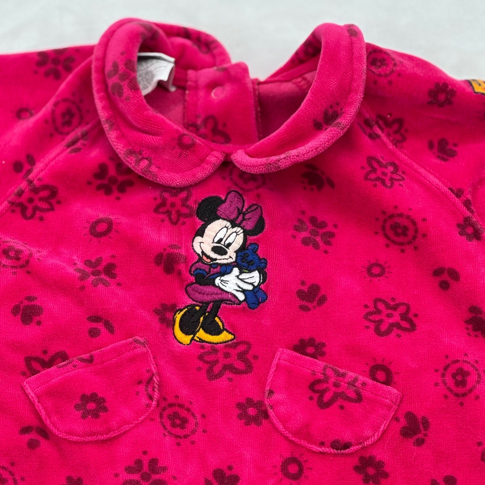 Vintage Disney Store Minnie Mouse Pink Velour Coverall Jumpsuit Romper 6 Months