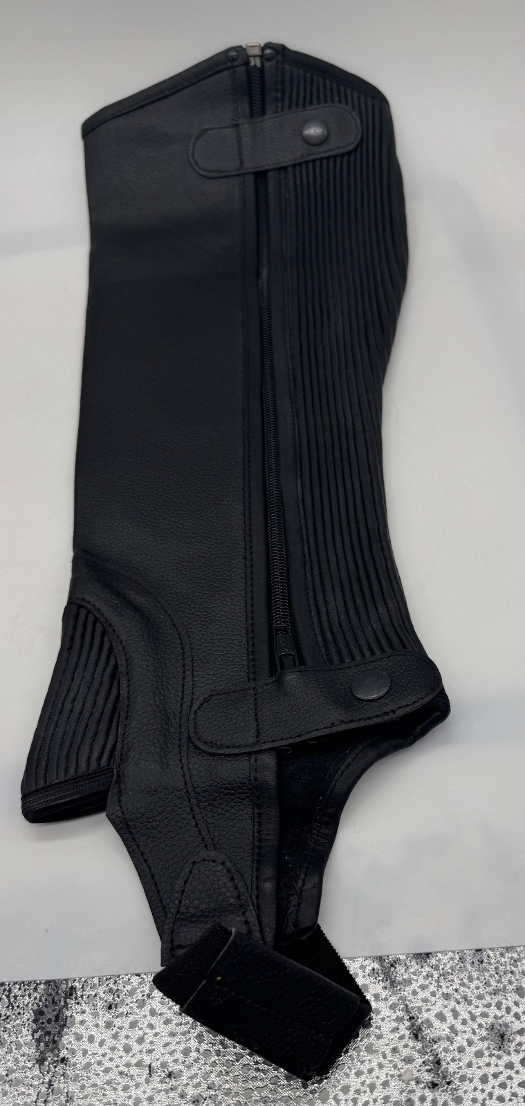 как выглядит Half Chaps Medium Leather Black 22 In Length 7 In Calf Zipper / Snaps фото
