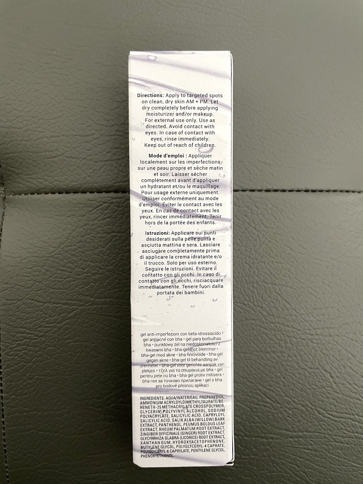 Ingredients: Licorice, Water, BHA, Salicylic Acid, Willow Bark Extract