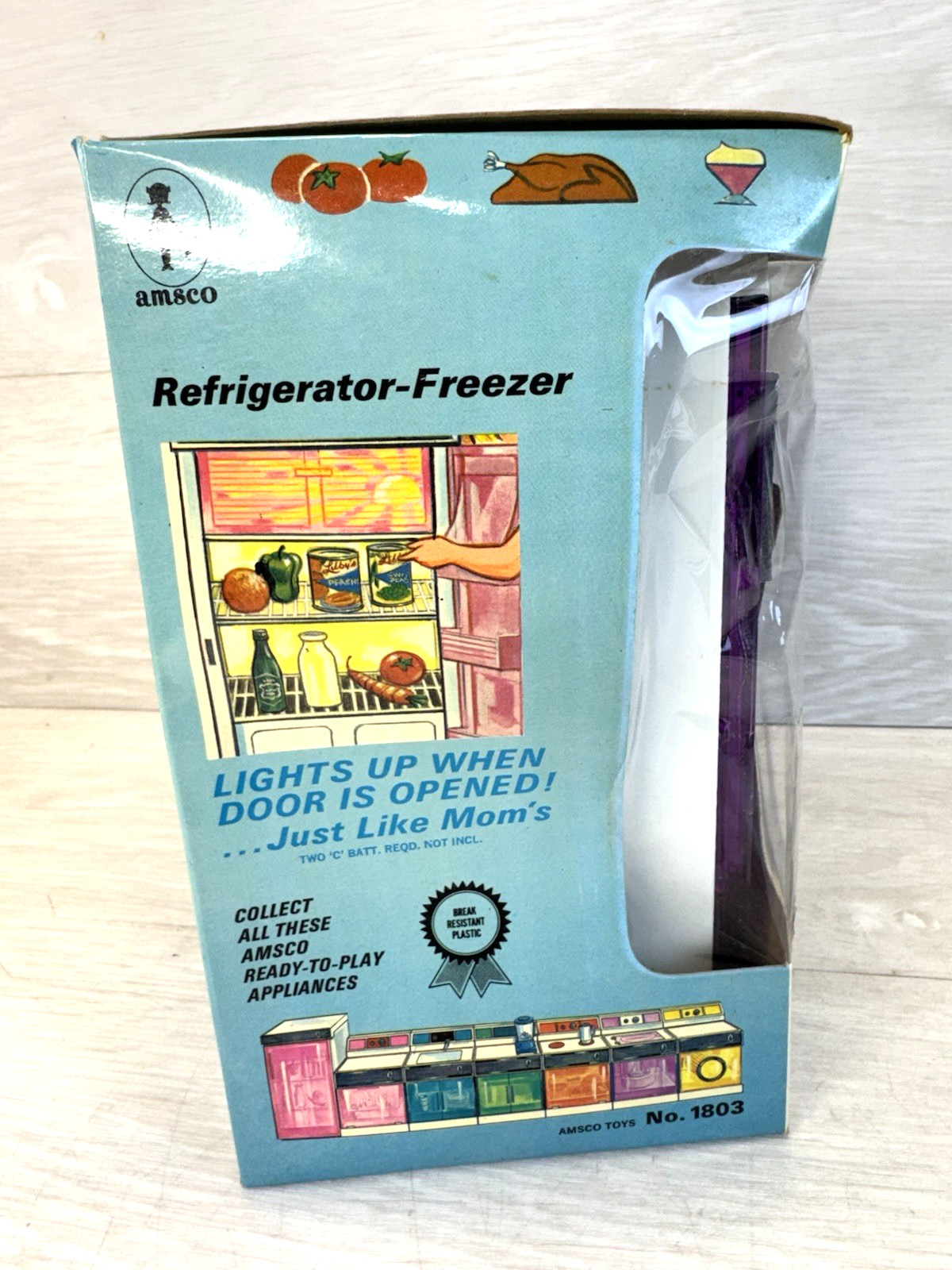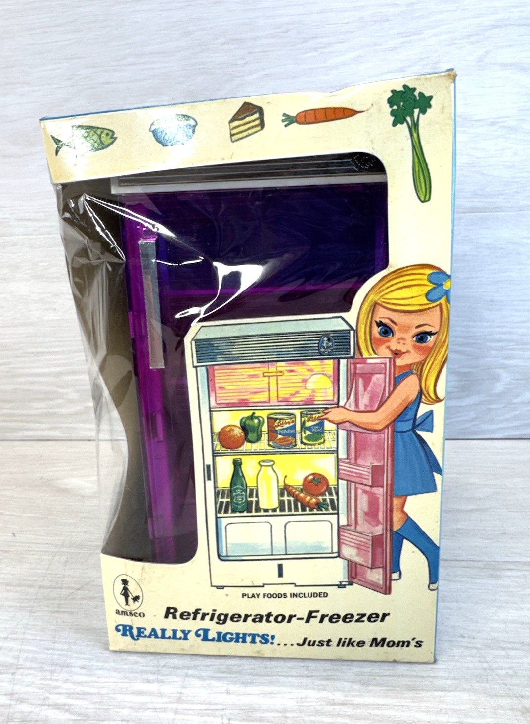 Vintage AMSCO 1960s Toy Refrigerator Freezer With Play Food NEW IN BOX