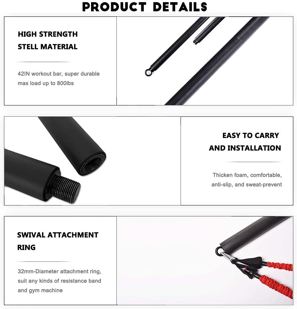 Resistance Band Bar 38Inch Strength Power Training Heavy Duty Lifting Squat Fitn