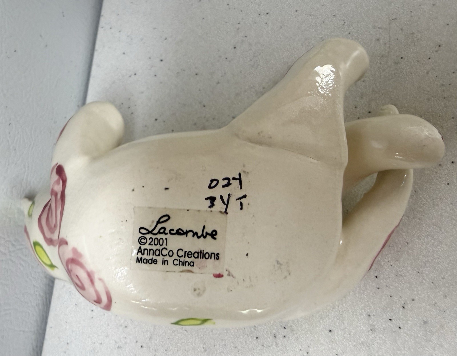 как выглядит Vintage Amy Lacombe Whimsiclay Reclining Cat Roses 2001 Missing Whisker SE37 фото