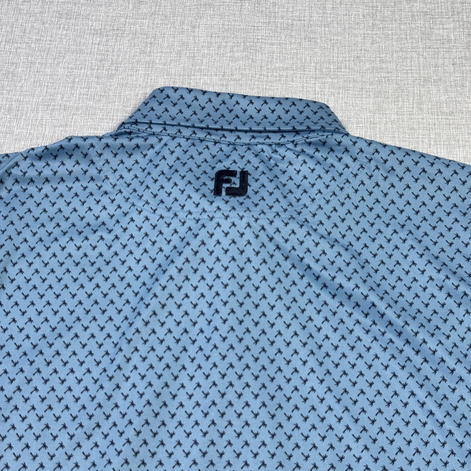 как выглядит FootJoy Golf Polo Shirt Mens Large Blue Palm Tree Short Sleeve Performance фото