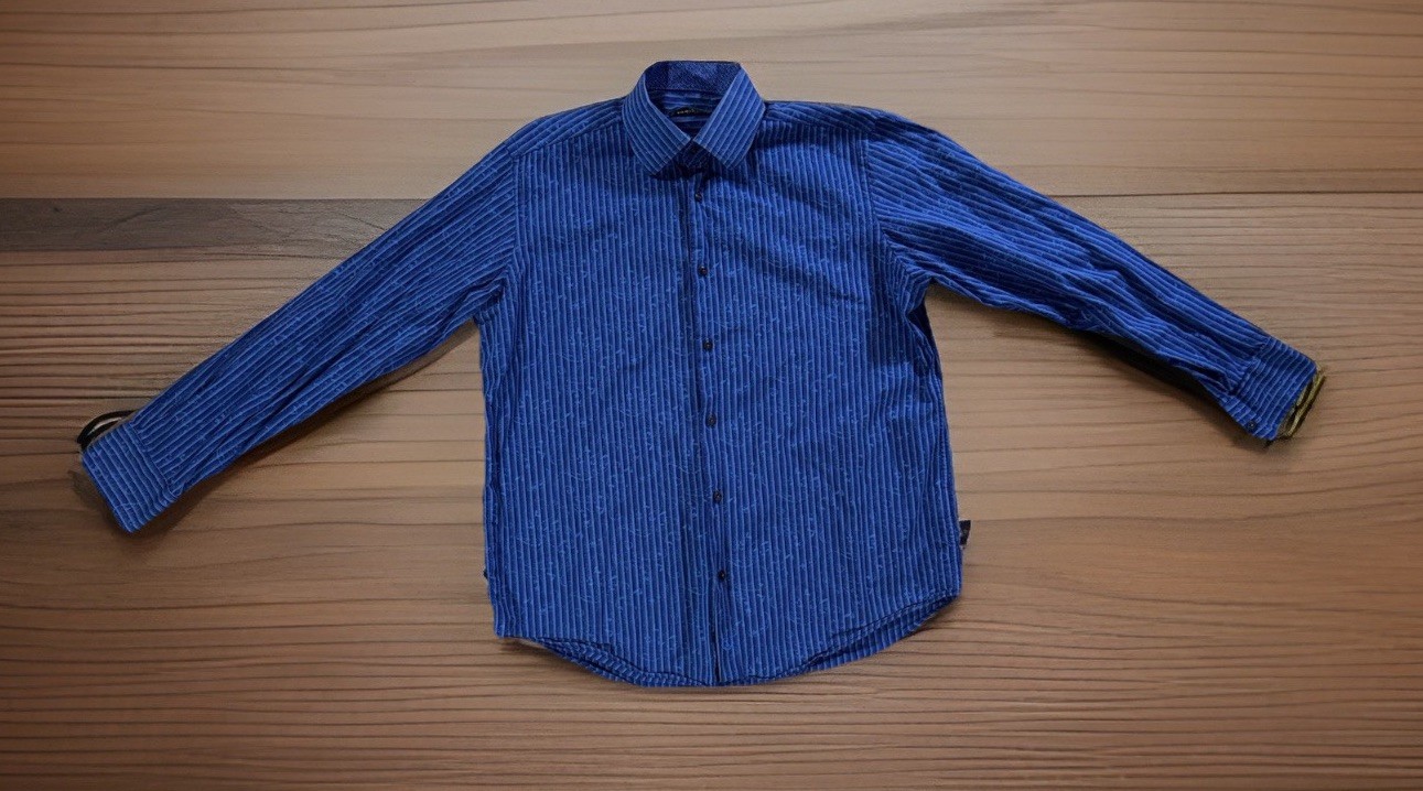 как выглядит bugatchi mens Med shirt Long Sleeve Button Down Casual Blue Paisley Stripe City фото
